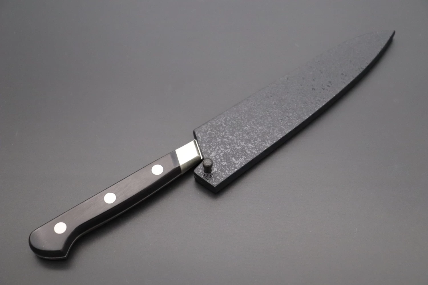 The Misono UX10 Series knives are one of the highest-quality professional stainless steel kitchen knives on the market and they feature a stylish, well balanced, slanted Nickel Silver bolster. This particular handcrafted Magnolia Wooden Saya has been specially customized to seamlessly fit the UX10 No.732 Petty 130mm and UX10 with Dimples No.772 Petty130mm. It offers the best-possible fit for the UX10 No.732 Petty 130mm and it is therefore the Saya we recommend for these knives.