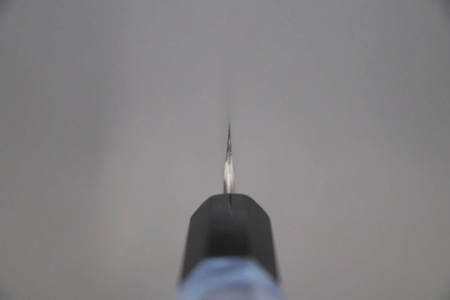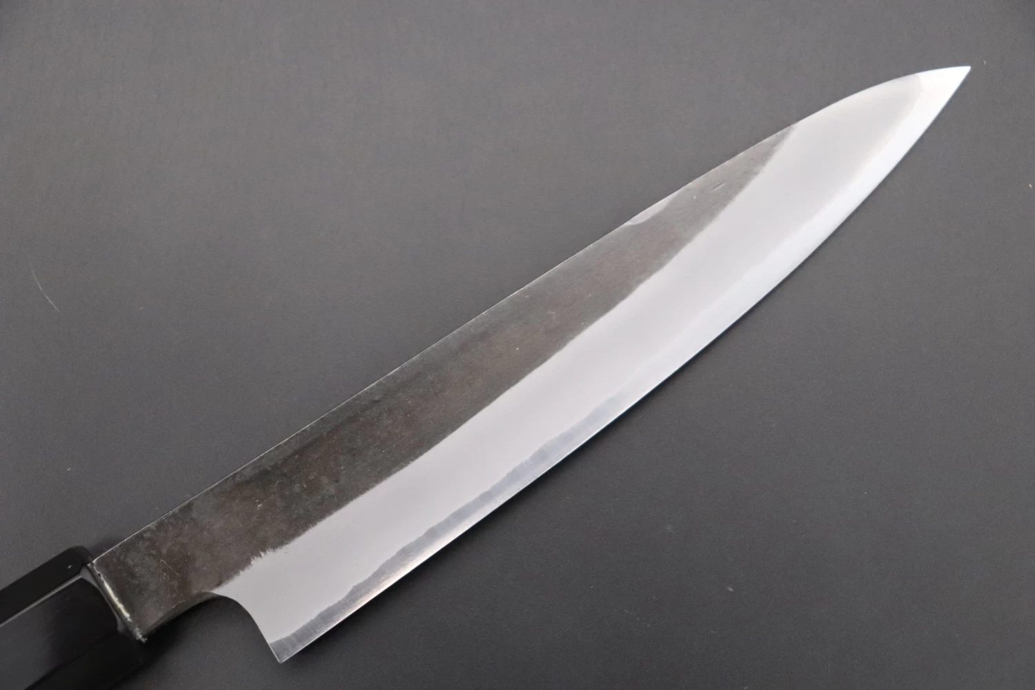 Although some people consider Master Honoura’s knives to be thick and heavy, their geometry is the result of carefully considering every aspect of their function. Contrary to what you might expect, the process of forging a thick blade ‘to shape’ actually requires a lot of time and skill. Master Honoura’s knives are nicely tapered from their heel to the tip and from their spine down to the cutting edge, which is ground very thin behind the edge. We are confident that these knives will provide the high cutting performance that is demanded by Carbon steel lovers!