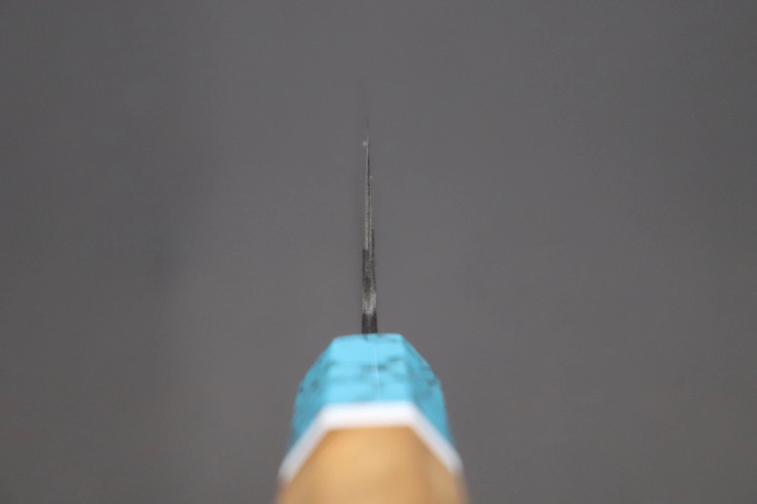 Although some people consider Master Honoura’s knives to be thick and heavy, their geometry is the result of carefully considering every aspect of their function. Contrary to what you might expect, the process of forging a thick blade ‘to shape’ actually requires a lot of time and skill. Master Honoura’s knives are nicely tapered from their heel to the tip and from their spine down to the cutting edge, which is ground very thin behind the edge. We are confident that these knives will provide the high cutting performance that is demanded by Carbon steel lovers!