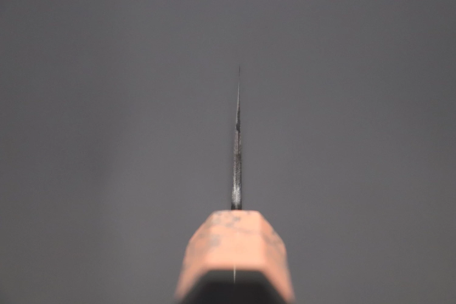 Although some people consider Master Honoura’s knives to be thick and heavy, their geometry is the result of carefully considering every aspect of their function. Contrary to what you might expect, the process of forging a thick blade ‘to shape’ actually requires a lot of time and skill. Master Honoura’s knives are nicely tapered from their heel to the tip and from their spine down to the cutting edge, which is ground very thin behind the edge. We are confident that these knives will provide the high cutting performance that is demanded by Carbon steel lovers!