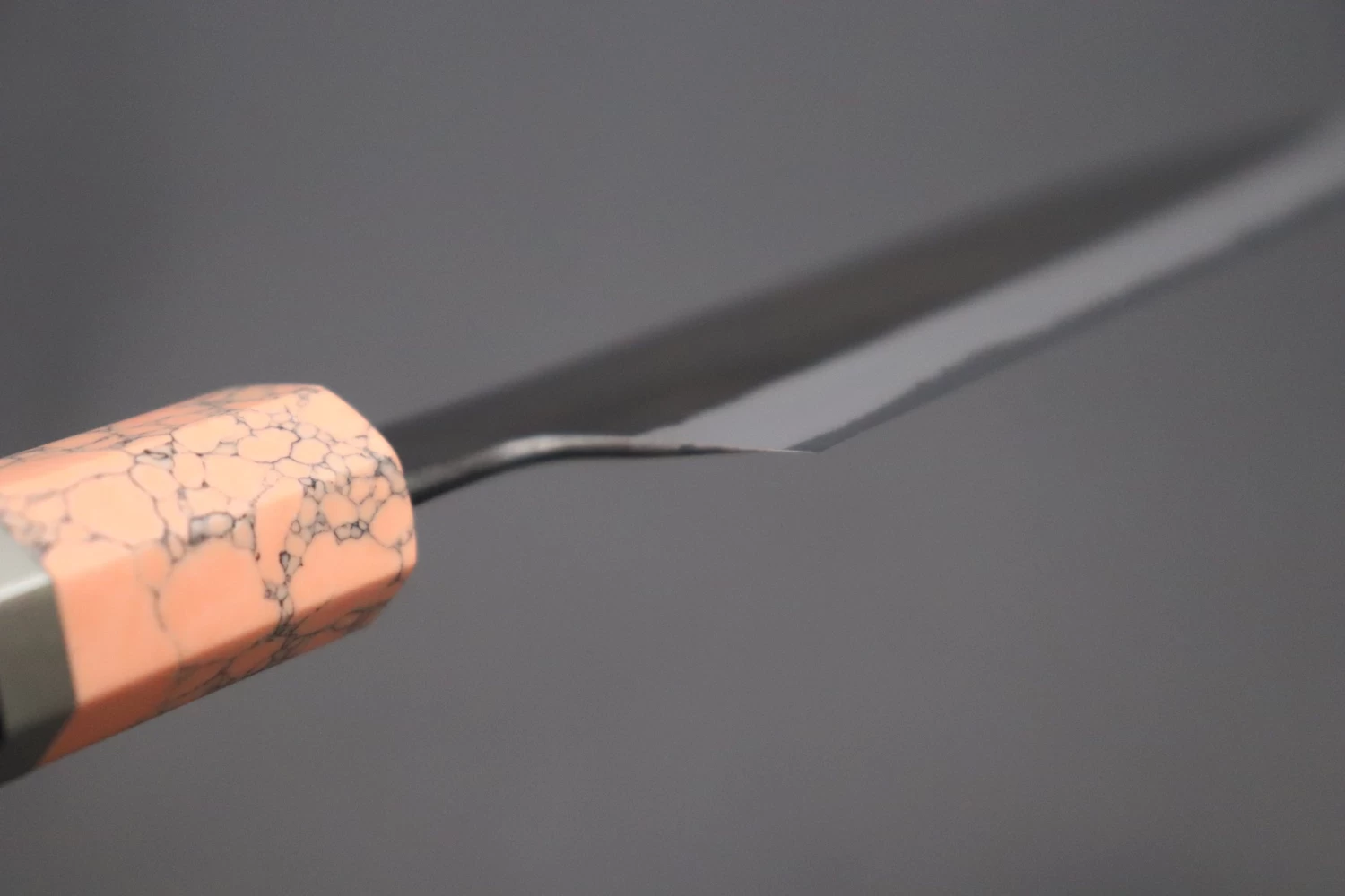 The concept behind the collaborative knives that we have produced with Master Hinoura was simple: We both wanted to to produce superbly sharp, highly practical and aesthetically attractive high-carbon steel knives that would satisfy the needs and desires of knife enthusiasts who love high-carbon steel knives.