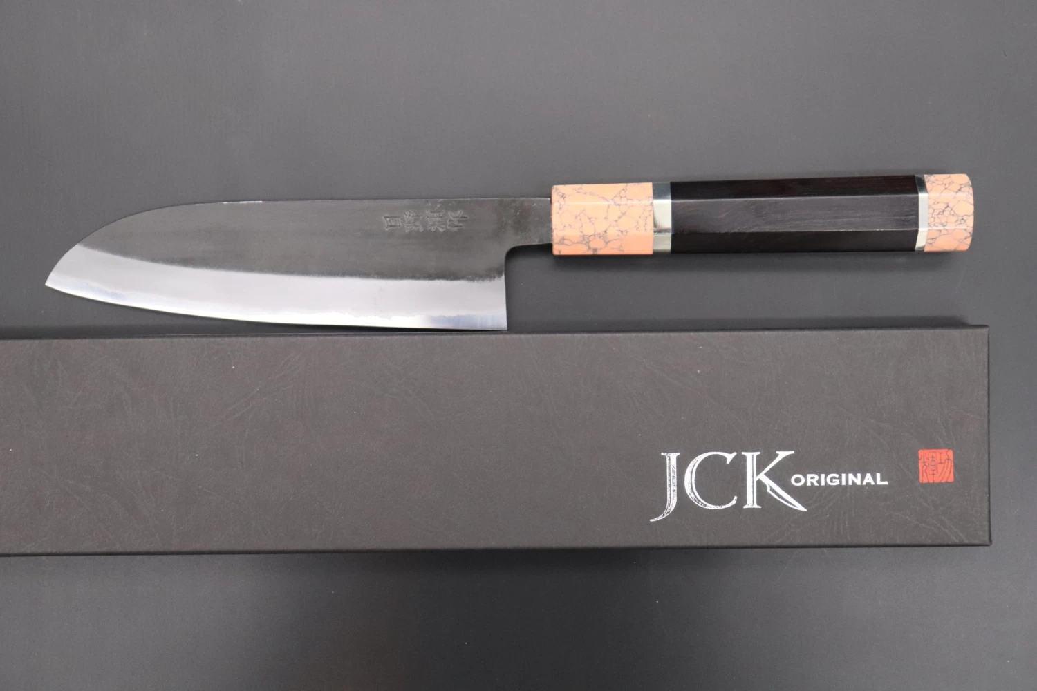 One of the Major Japanese Steel company Hitachi Steel Company’s capacity for producing the high grade cutlery steels including the White Steel No.1 is becoming very much limited. Under such circumstances, JCK is trying best to preserve the very purity and high cutting ability of White Steel No.1 Carbon steel knives with Master Hinoura.