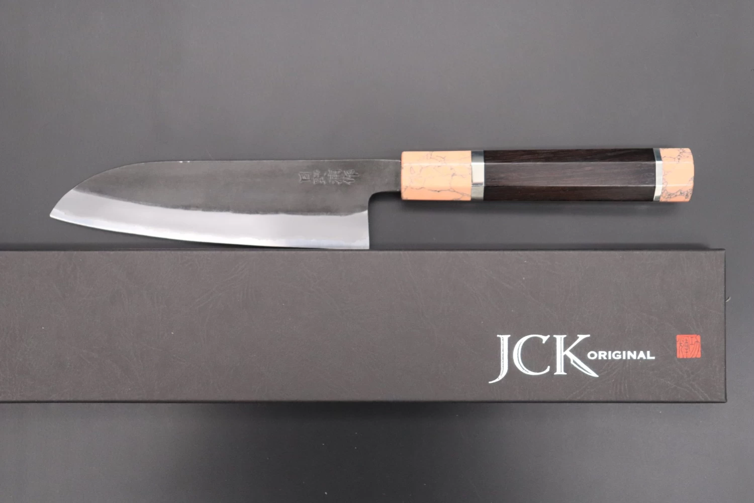 One of the Major Japanese Steel company Hitachi Steel Company’s capacity for producing the high grade cutlery steels including the White Steel No.1 is becoming very much limited. Under such circumstances, JCK is trying best to preserve the very purity and high cutting ability of White Steel No.1 Carbon steel knives with Master Hinoura.