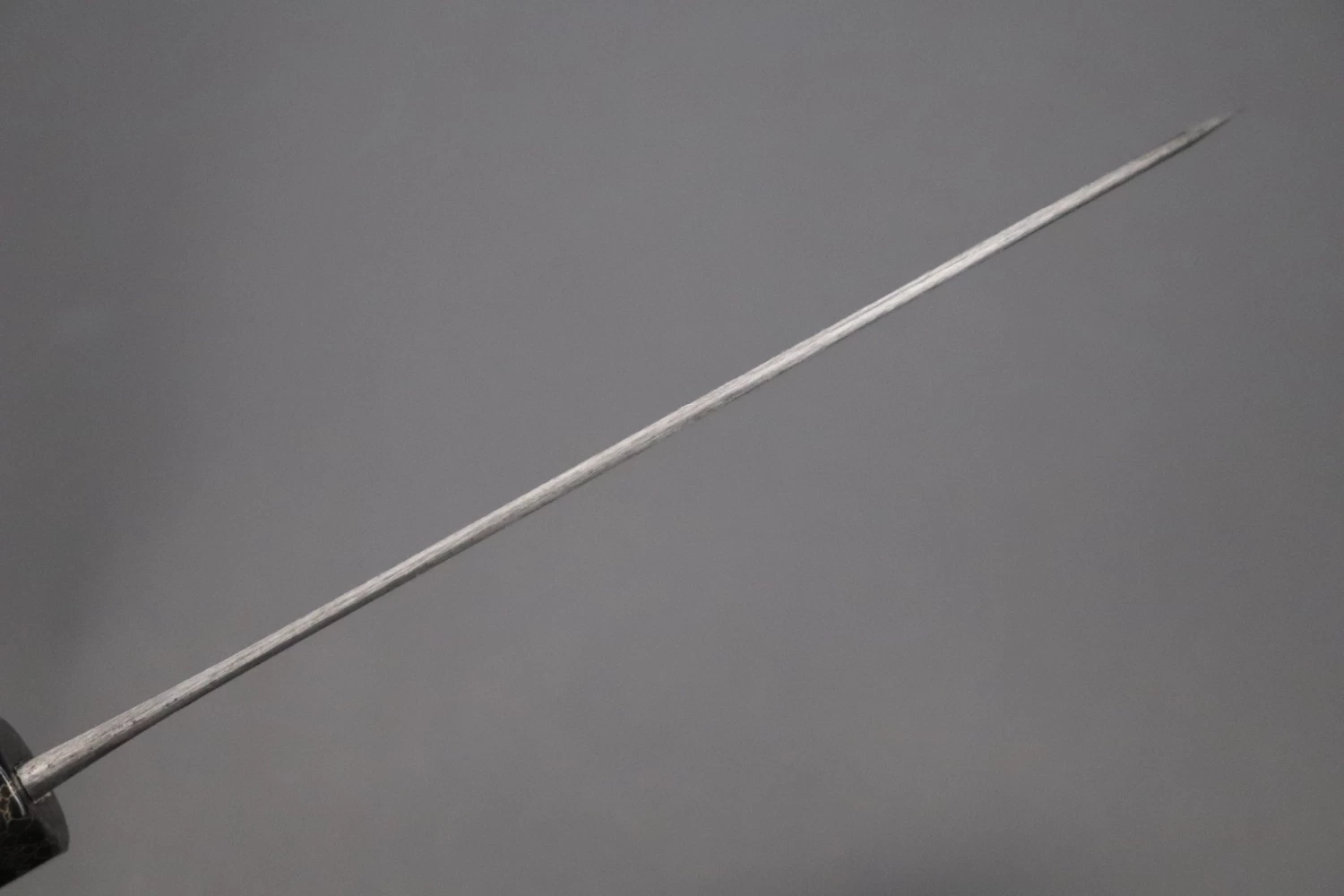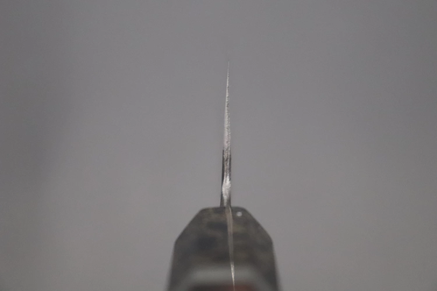 More Information: Unlike many traditionally forged knives, Master Hinoura’s knives have a relatively thick spine at the point where the tang enters the handle (The ‘neck’). In part, this because he forges these laminated knives using a piece of high carbon steel that is much thicker than that commonly used by other forge-smiths. The thick spine and neck makes the knife very strong, very comfortable to hold in a ‘pinch-grip’ and also results in excellent blade balance.
