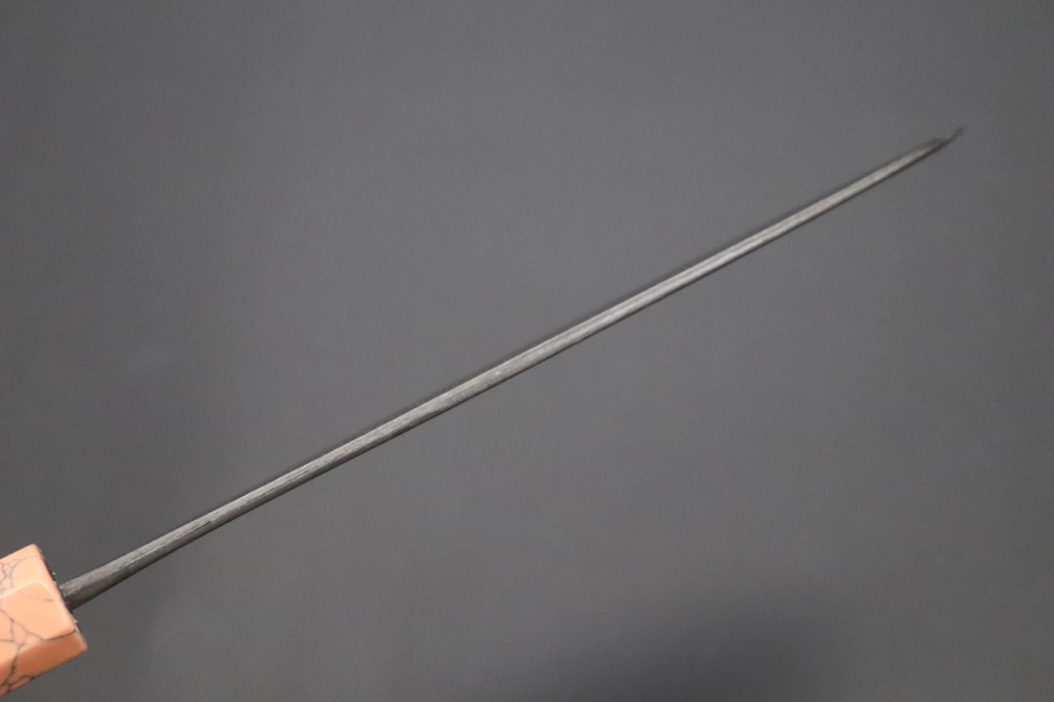 Handle Material: Octagonal Desert Ironwood handle with a Soft Pink Turquoise Composite Stone Ferrule & Butt with Nickel Silver Spacers