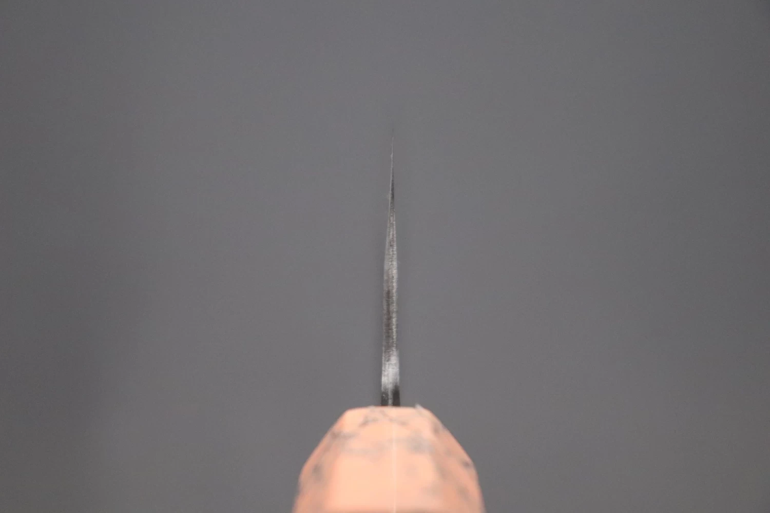 Although some people consider Master Honoura’s knives to be thick and heavy, their geometry is the result of carefully considering every aspect of their function. Contrary to what you might expect, the process of forging a thick blade ‘to shape’ actually requires a lot of time and skill. Master Honoura’s knives are nicely tapered from their heel to the tip and from their spine down to the cutting edge, which is ground very thin behind the edge. We are confident that these knives will provide the high cutting performance that is demanded by Carbon steel lovers!