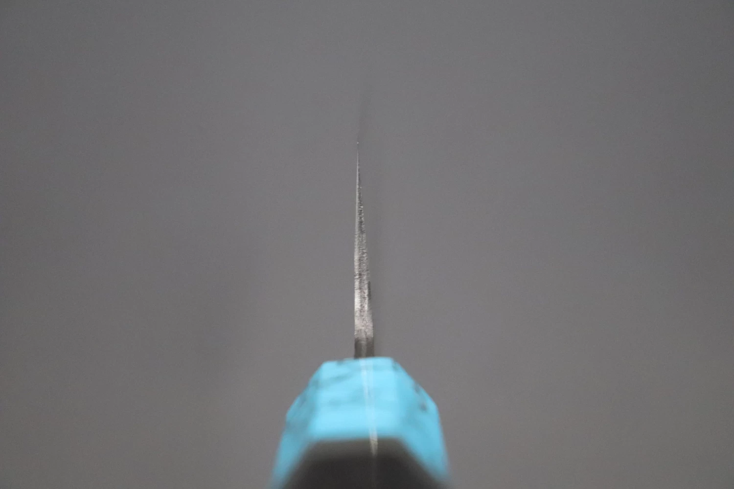 Although some people consider Master Honoura’s knives to be thick and heavy, their geometry is the result of carefully considering every aspect of their function. Contrary to what you might expect, the process of forging a thick blade ‘to shape’ actually requires a lot of time and skill. Master Honoura’s knives are nicely tapered from their heel to the tip and from their spine down to the cutting edge, which is ground very thin behind the edge. We are confident that these knives will provide the high cutting performance that is demanded by Carbon steel lovers!