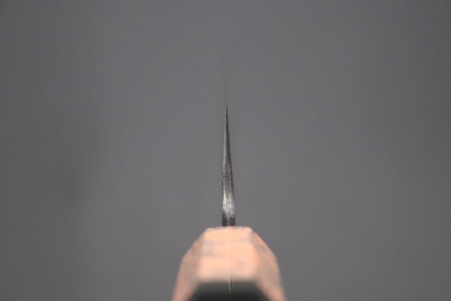 More Information: Unlike many traditionally forged knives, Master Hinoura’s knives have a relatively thick spine at the point where the tang enters the handle (The ‘neck’). In part, this because he forges these laminated knives using a piece of high carbon steel that is much thicker than that commonly used by other forge-smiths. The thick spine and neck makes the knife very strong, very comfortable to hold in a ‘pinch-grip’ and also results in excellent blade balance.