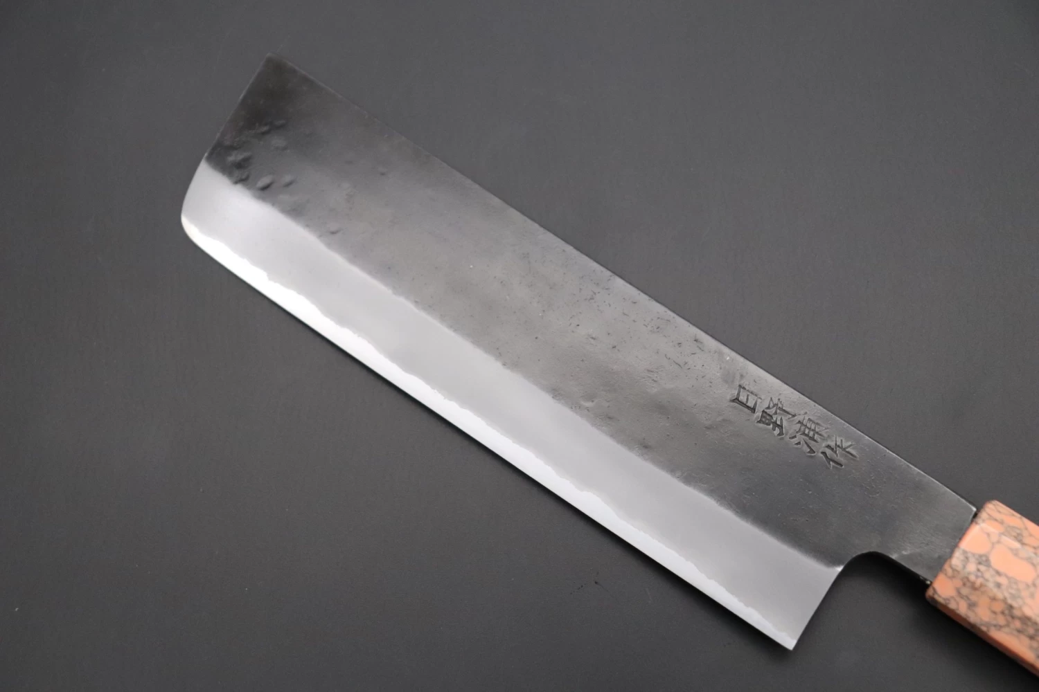 Although some people consider Master Honoura’s knives to be thick and heavy, their geometry is the result of carefully considering every aspect of their function. Contrary to what you might expect, the process of forging a thick blade ‘to shape’ actually requires a lot of time and skill. Master Honoura’s knives are nicely tapered from their heel to the tip and from their spine down to the cutting edge, which is ground very thin behind the edge. We are confident that these knives will provide the high cutting performance that is demanded by Carbon steel lovers!