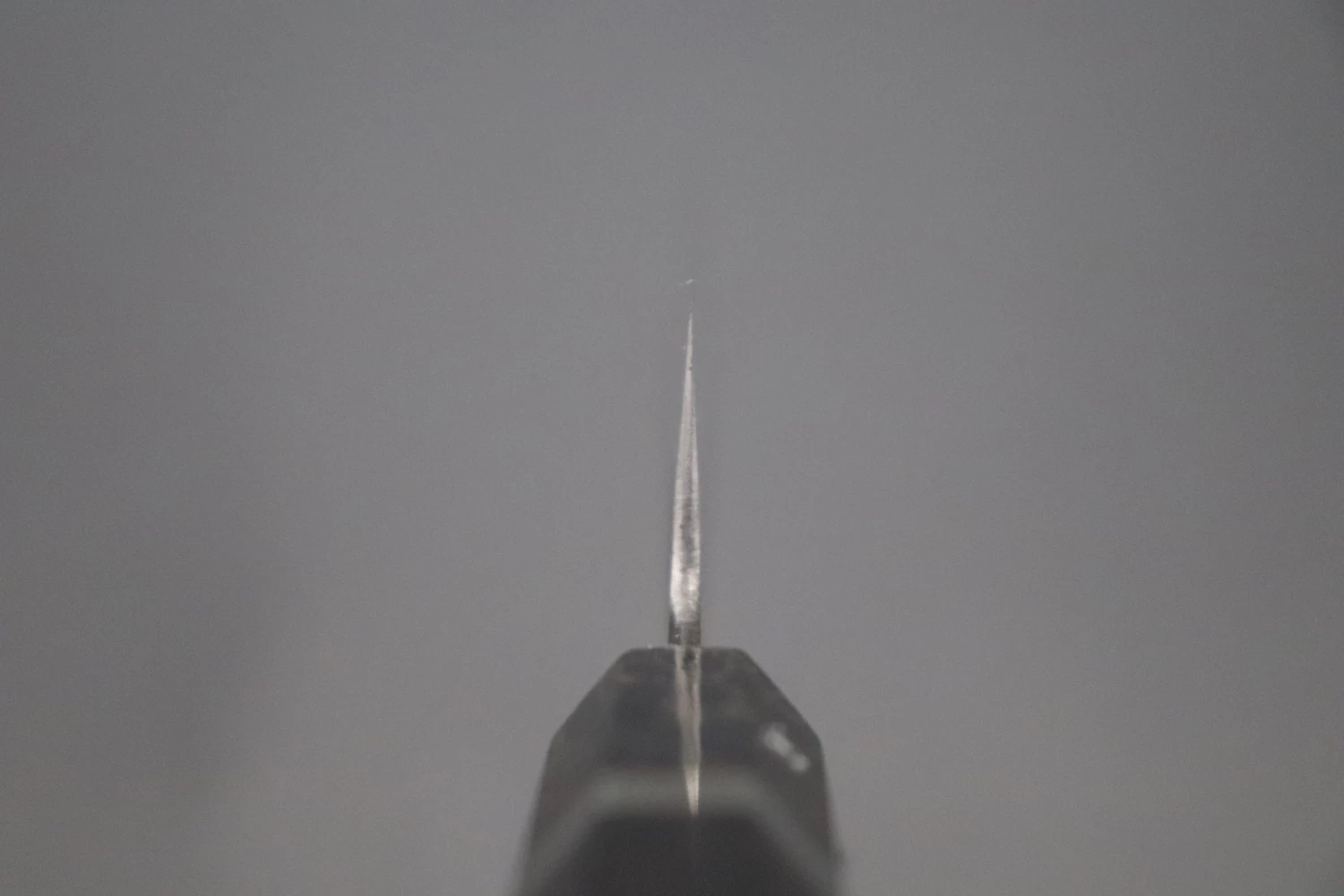 More Information: Unlike many traditionally forged knives, Master Hinoura’s knives have a relatively thick spine at the point where the tang enters the handle (The ‘neck’). In part, this because he forges these laminated knives using a piece of high carbon steel that is much thicker than that commonly used by other forge-smiths. The thick spine and neck makes the knife very strong, very comfortable to hold in a ‘pinch-grip’ and also results in excellent blade balance.