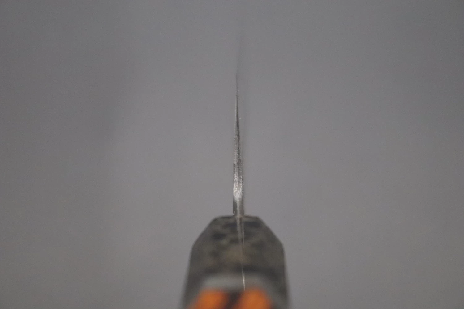 Although some people consider Master Honoura’s knives to be thick and heavy, their geometry is the result of carefully considering every aspect of their function. Contrary to what you might expect, the process of forging a thick blade ‘to shape’ actually requires a lot of time and skill. Master Honoura’s knives are nicely tapered from their heel to the tip and from their spine down to the cutting edge, which is ground very thin behind the edge. We are confident that these knives will provide the high cutting performance that is demanded by Carbon steel lovers!