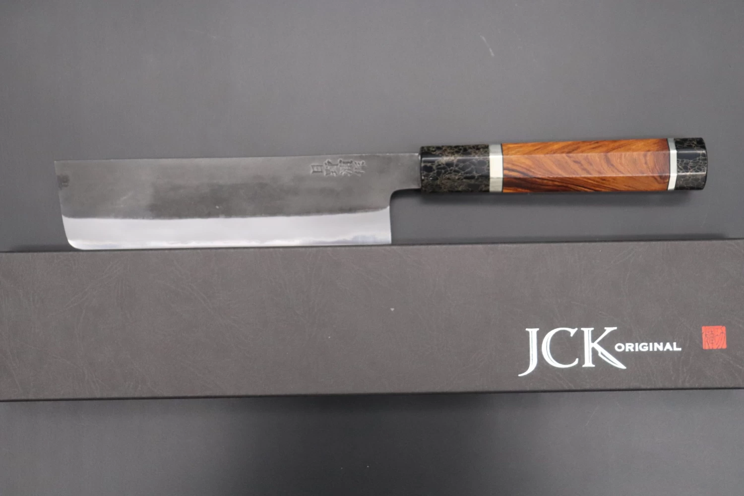 One of the Major Japanese Steel company Hitachi Steel Company’s capacity for producing the high grade cutlery steels including the White Steel No.1 is becoming very much limited. Under such circumstances, JCK is trying best to preserve the very purity and high cutting ability of White Steel No.1 Carbon steel knives with Master Hinoura.