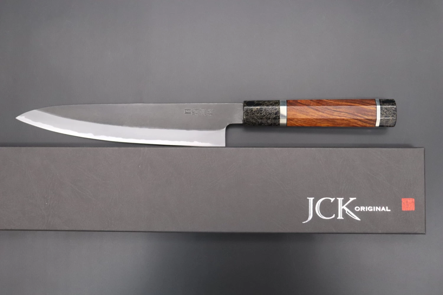 One of the Major Japanese Steel company Hitachi Steel Company’s capacity for producing the high grade cutlery steels including the White Steel No.1 is becoming very much limited. Under such circumstances, JCK is trying best to preserve the very purity and high cutting ability of White Steel No.1 Carbon steel knives with Master Hinoura.