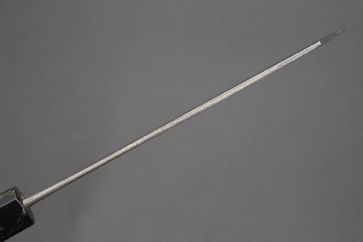 More Information: Unlike many traditionally forged knives, Master Hinoura’s knives have a relatively thick spine at the point where the tang enters the handle (The ‘neck’). In part, this because he forges these laminated knives using a piece of high carbon steel that is much thicker than that commonly used by other forge-smiths. The thick spine and neck makes the knife very strong, very comfortable to hold in a ‘pinch-grip’ and also results in excellent blade balance.