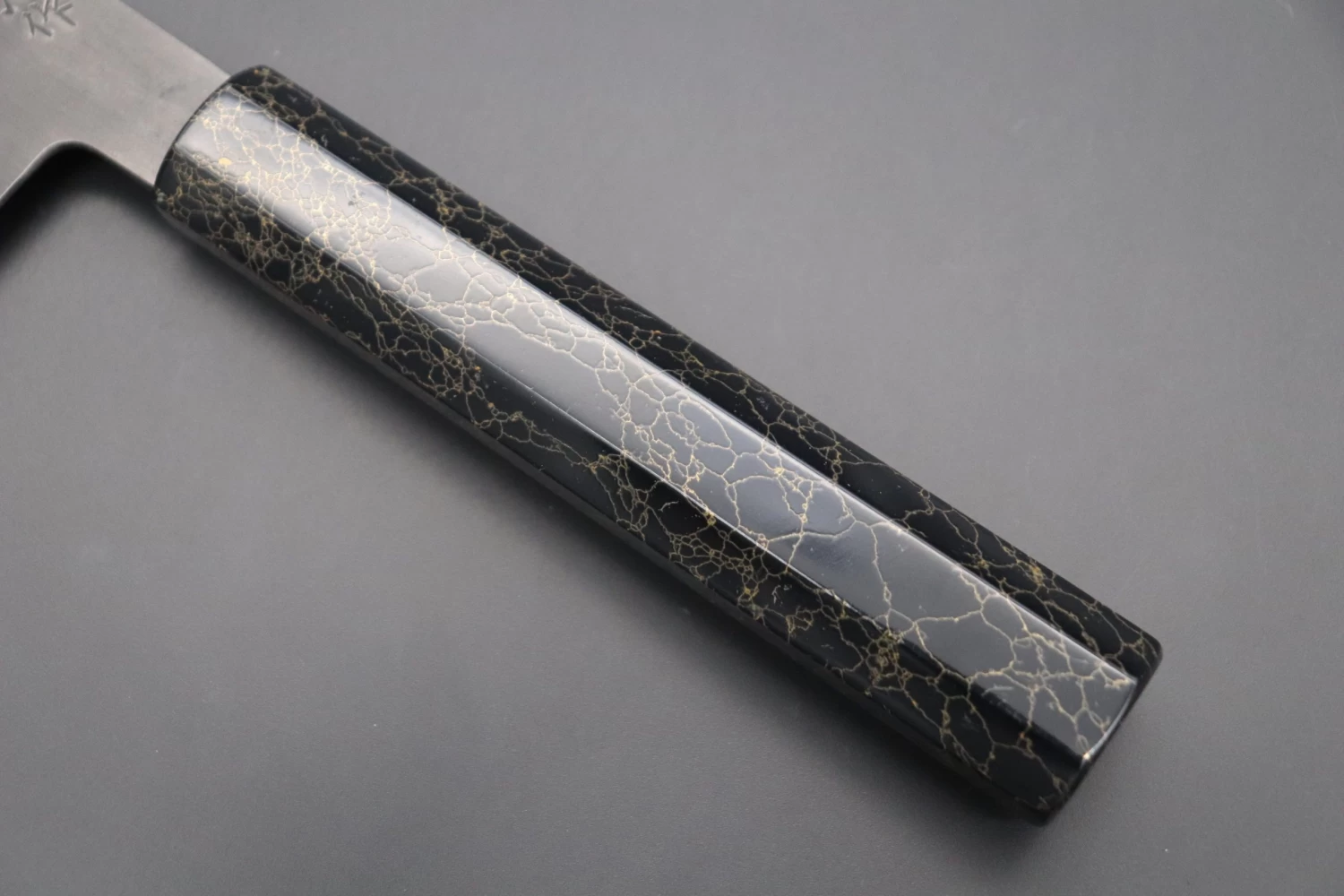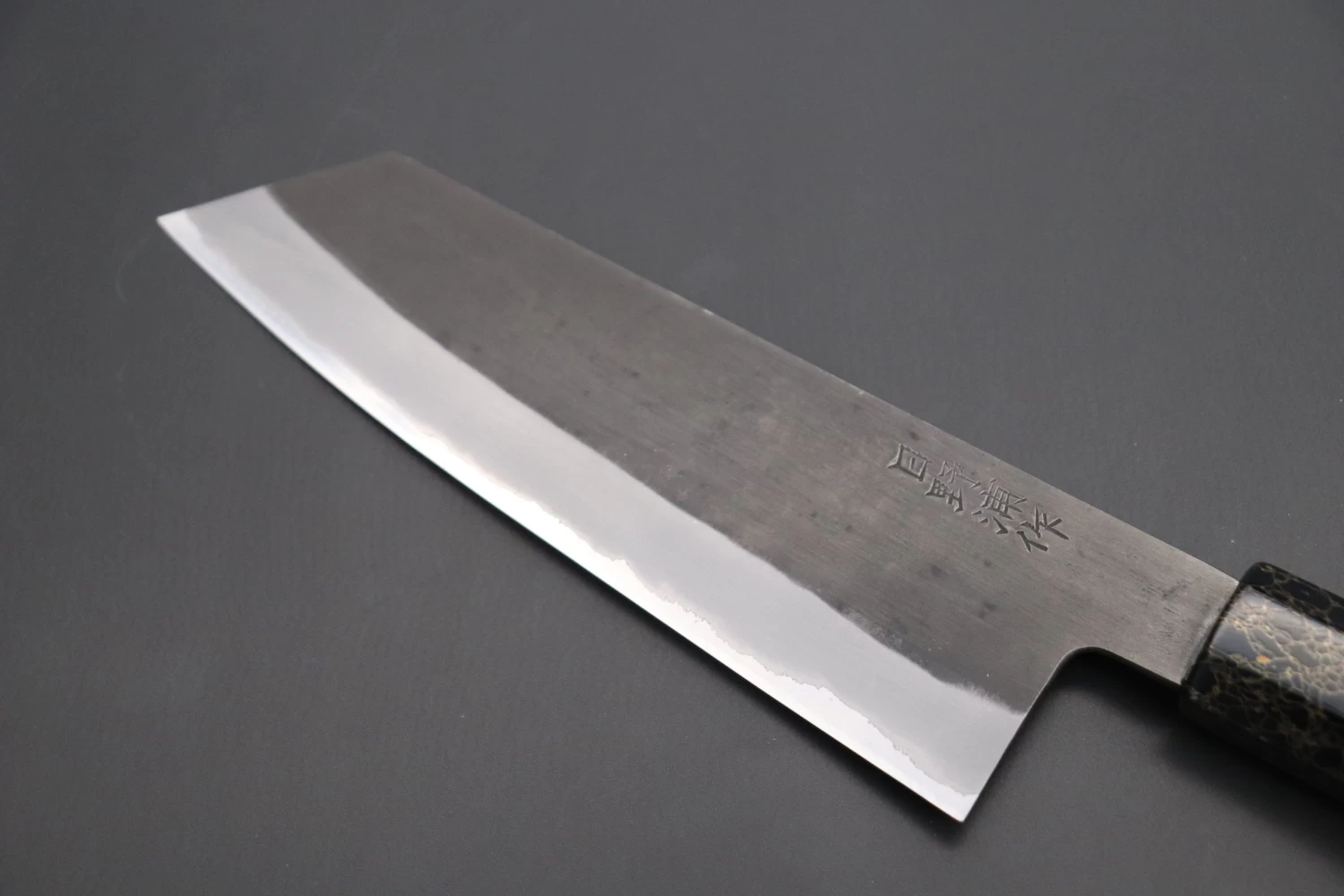 Although some people consider Master Honoura’s knives to be thick and heavy, their geometry is the result of carefully considering every aspect of their function. Contrary to what you might expect, the process of forging a thick blade ‘to shape’ actually requires a lot of time and skill. Master Honoura’s knives are nicely tapered from their heel to the tip and from their spine down to the cutting edge, which is ground very thin behind the edge. We are confident that these knives will provide the high cutting performance that is demanded by Carbon steel lovers!