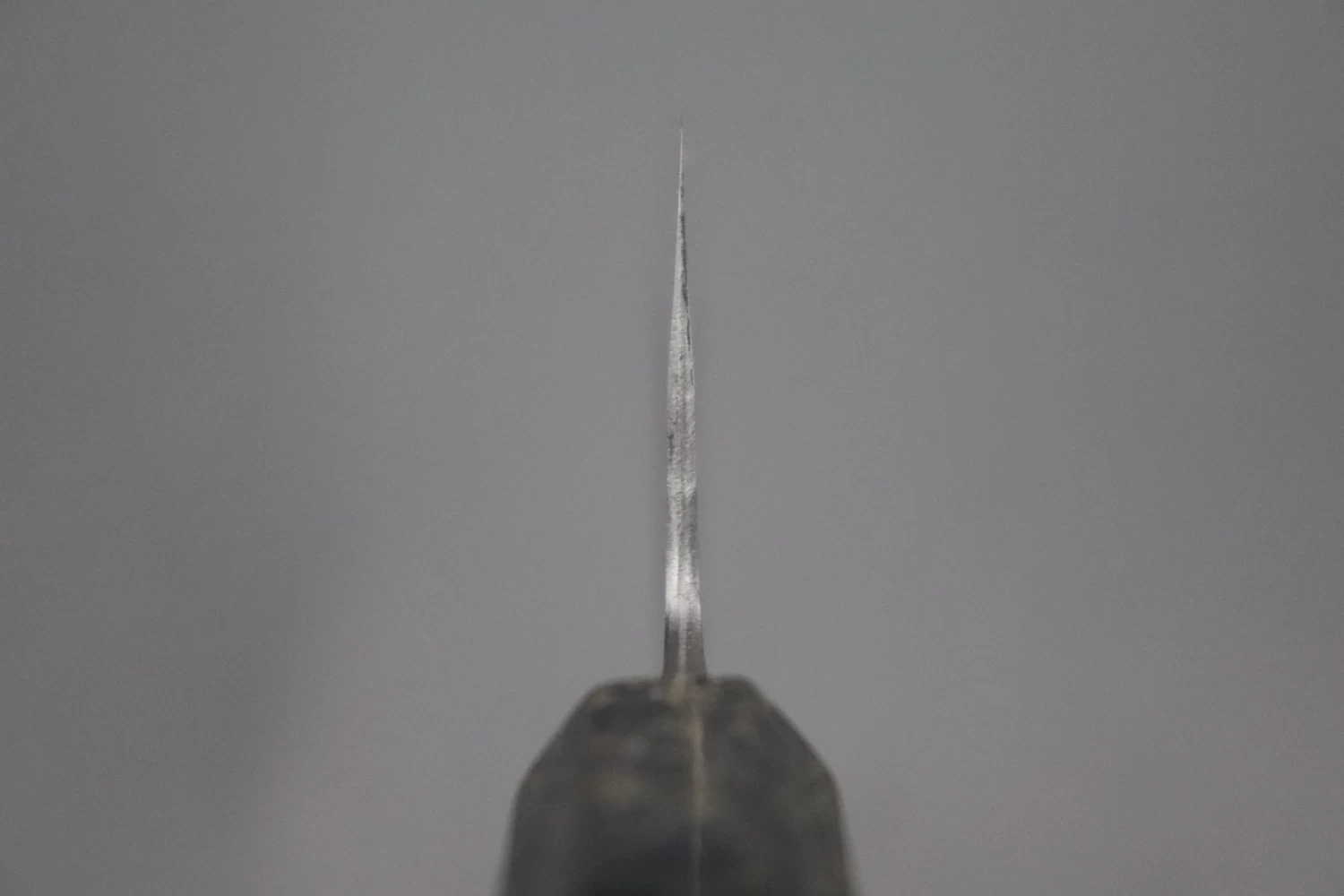 More Information: Unlike many traditionally forged knives, Master Hinoura’s knives have a relatively thick spine at the point where the tang enters the handle (The ‘neck’). In part, this because he forges these laminated knives using a piece of high carbon steel that is much thicker than that commonly used by other forge-smiths. The thick spine and neck makes the knife very strong, very comfortable to hold in a ‘pinch-grip’ and also results in excellent blade balance.