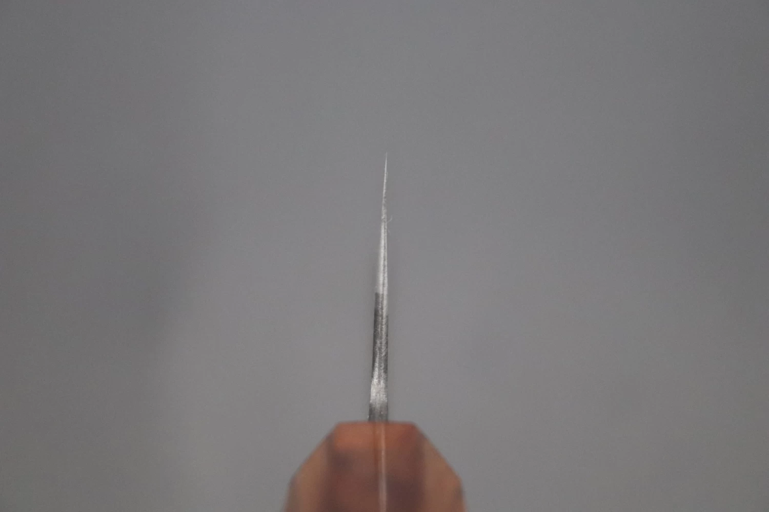 More Information: Unlike many traditionally forged knives, Master Hinoura’s knives have a relatively thick spine at the point where the tang enters the handle (The ‘neck’). In part, this because he forges these laminated knives using a piece of high carbon steel that is much thicker than that commonly used by other forge-smiths. The thick spine and neck makes the knife very strong, very comfortable to hold in a ‘pinch-grip’ and also results in excellent blade balance.