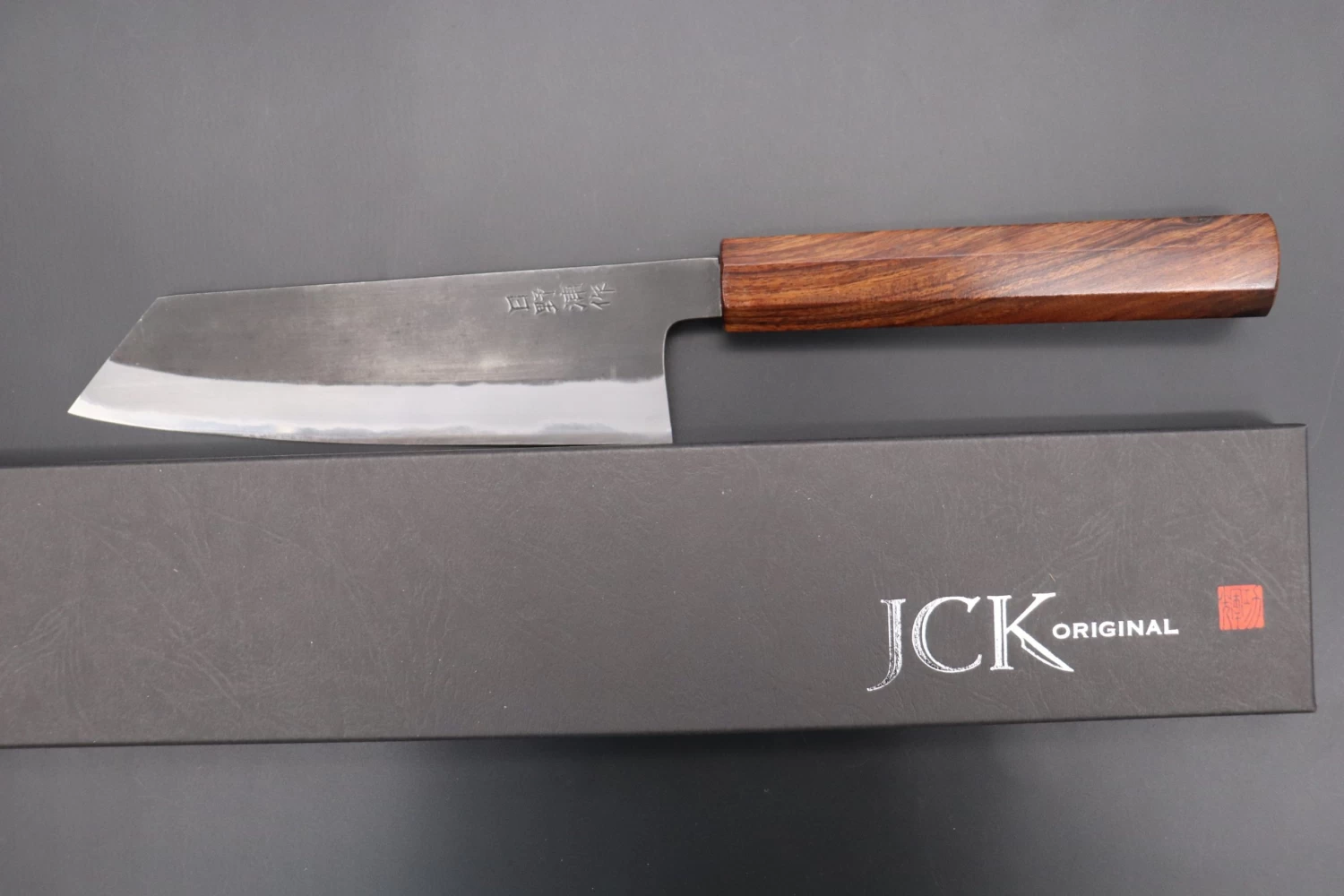 One of the Major Japanese Steel company Hitachi Steel Company’s capacity for producing the high grade cutlery steels including the White Steel No.1 is becoming very much limited. Under such circumstances, JCK is trying best to preserve the very purity and high cutting ability of White Steel No.1 Carbon steel knives with Master Hinoura.