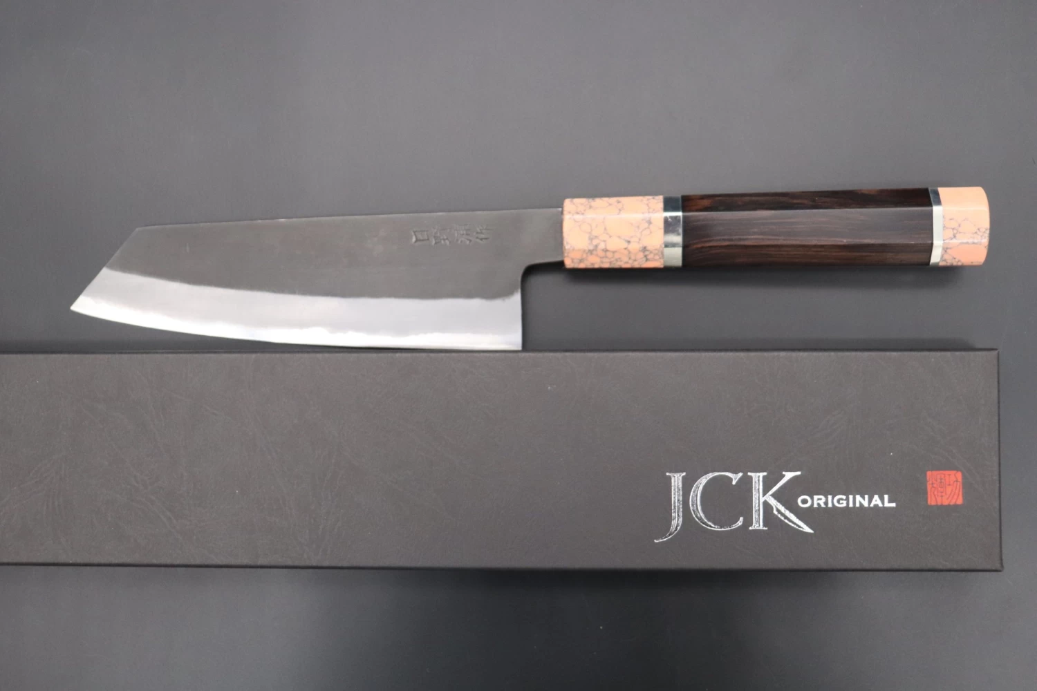 One of the Major Japanese Steel company Hitachi Steel Company’s capacity for producing the high grade cutlery steels including the White Steel No.1 is becoming very much limited. Under such circumstances, JCK is trying best to preserve the very purity and high cutting ability of White Steel No.1 Carbon steel knives with Master Hinoura.