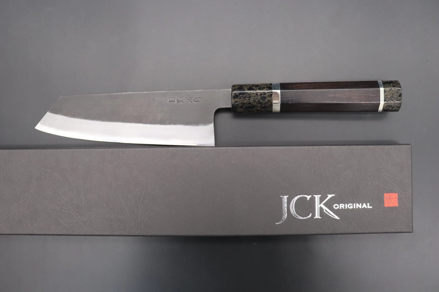 One of the Major Japanese Steel company Hitachi Steel Company’s capacity for producing the high grade cutlery steels including the White Steel No.1 is becoming very much limited. Under such circumstances, JCK is trying best to preserve the very purity and high cutting ability of White Steel No.1 Carbon steel knives with Master Hinoura.
