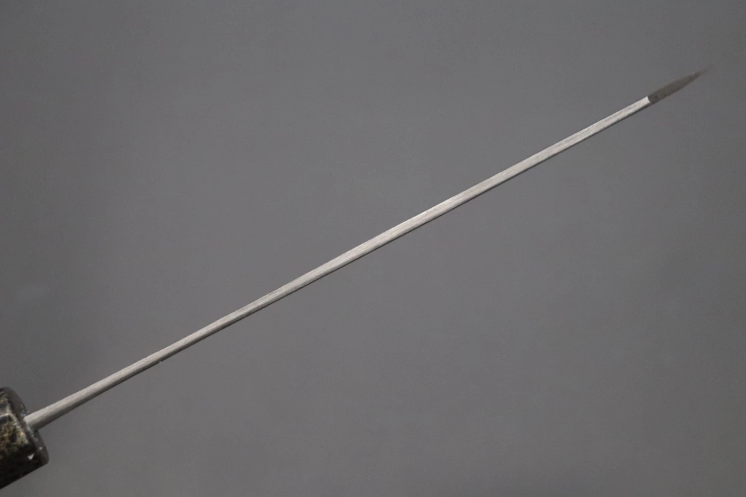 More Information: Unlike many traditionally forged knives, Master Hinoura’s knives have a relatively thick spine at the point where the tang enters the handle (The ‘neck’). In part, this because he forges these laminated knives using a piece of high carbon steel that is much thicker than that commonly used by other forge-smiths. The thick spine and neck makes the knife very strong, very comfortable to hold in a ‘pinch-grip’ and also results in excellent blade balance.