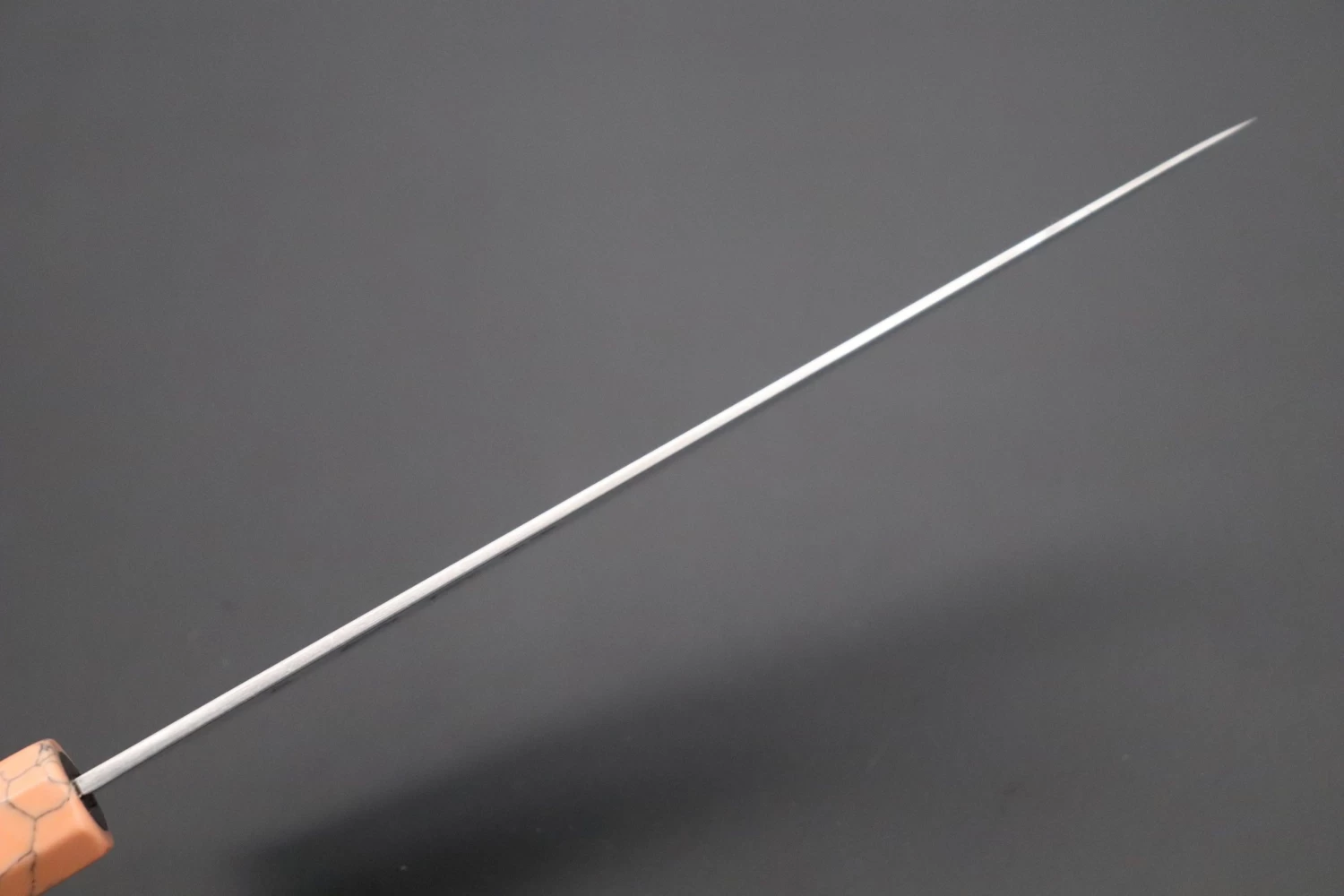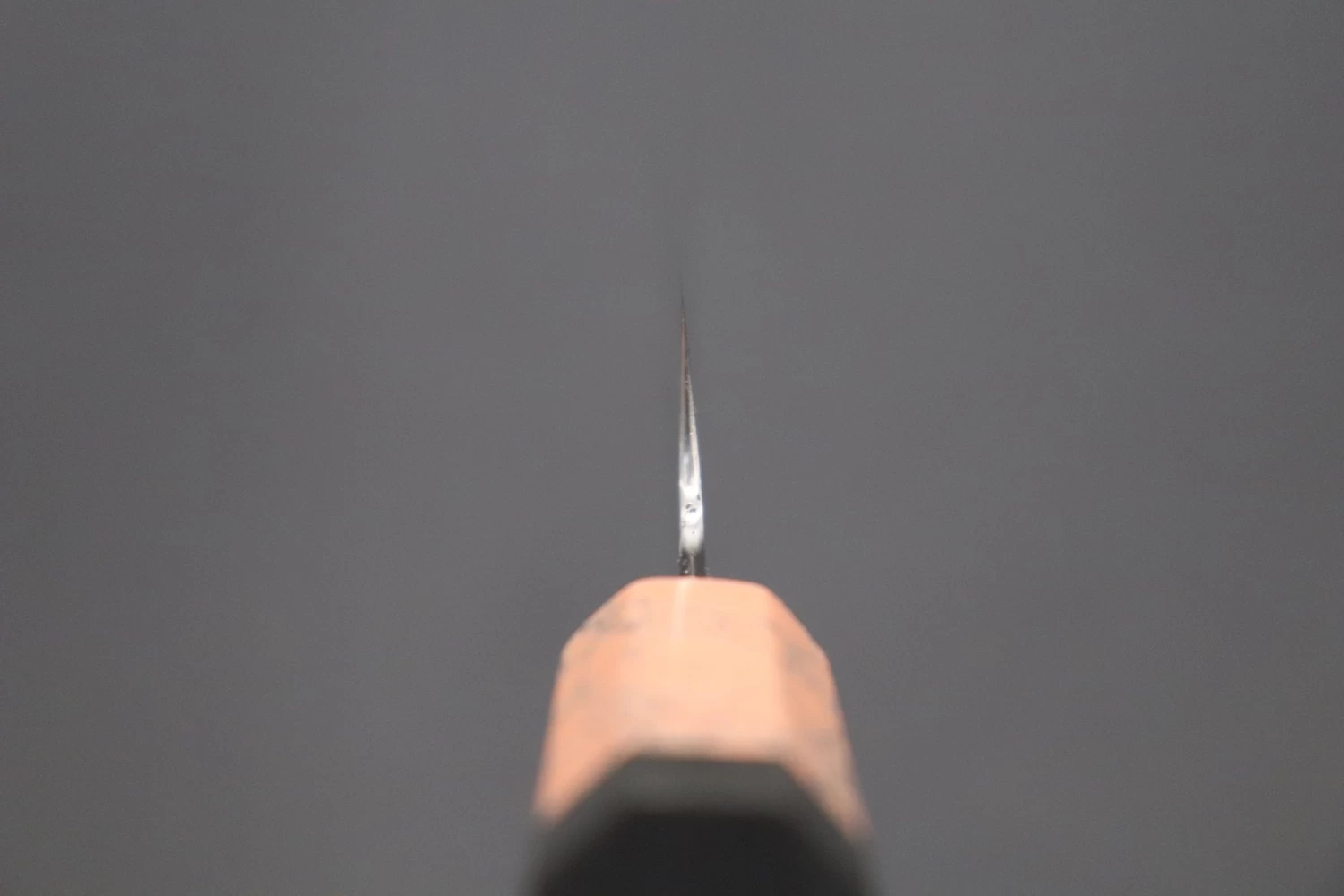 Sukenari’s knowledge of traditional forging processes and their extensive experience with modern, high performance, steels proved to be invaluable while perfecting these new HAP-40 knives. Master Hanaki, Sukenari’s innovative and energetic knife maker and Master forge-smith, has successfully managed to extract the best cutting performance and edge retention from these HAP-40 knives (HRc. 68). They are perfect for customers who love testing exotic hi-tech steels, or those who appreciate knives with outstanding cutting performance and edge retention.