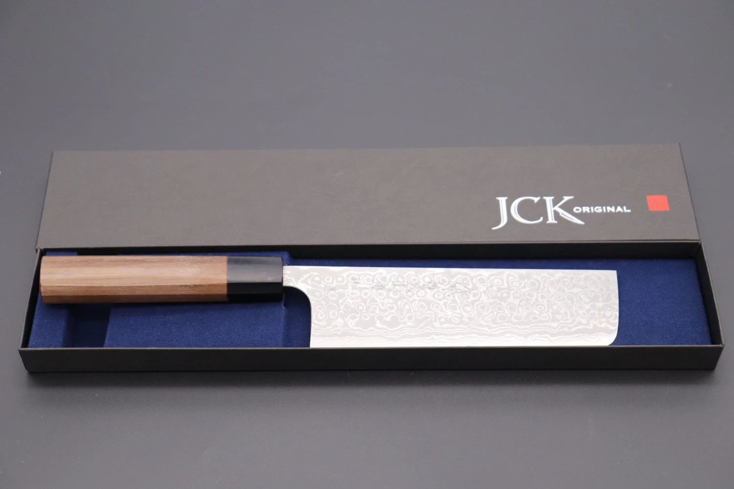 The Nakiri is a double bevel edged knife that is rectangular in profile and has a tall, thin blade. It is popular throughout Japan and is often used by home cooks for quickly and efficiently chopping, slicing or mincing vegetables and fruit. It is becoming increasingly popular with vegetarians.