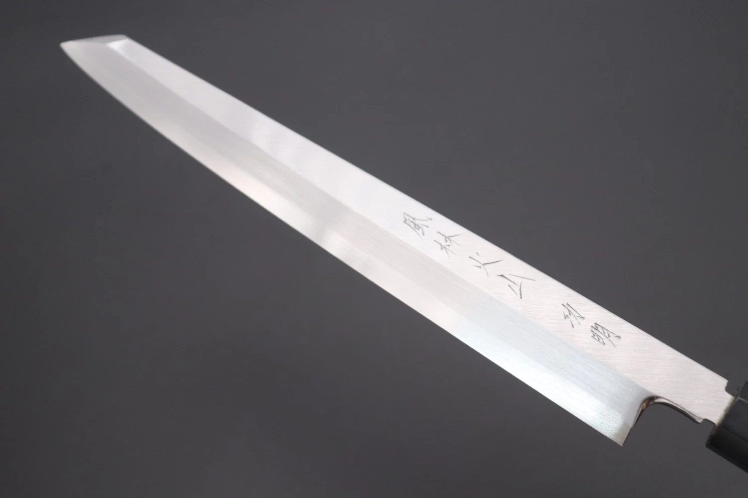 The Kirisuke Yanagiba has a very similar blade profile to the ‘regular’ Yanagiba, but it has what is commonly known as a ‘reverse tanto’ tip, or ‘clipped point’, which is very useful for precision cutting. Apart from this difference, the Kirisuke Yanagiba functions in the same way as the ‘plain’ Yanagiba or the Takohiki.