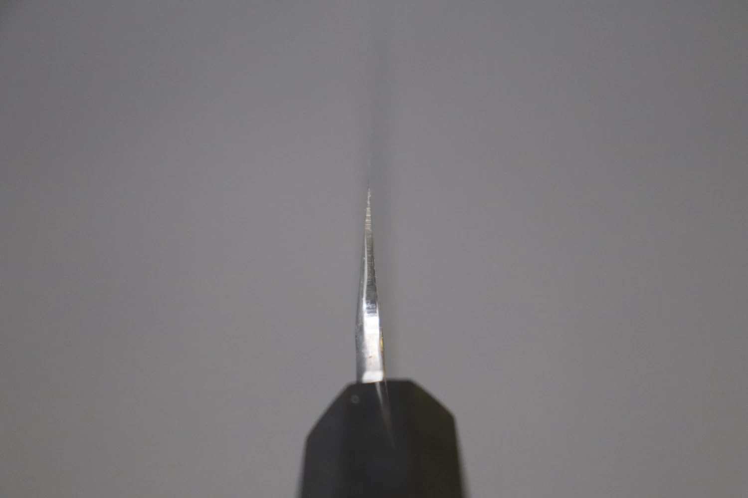 This knife has a cutting edge of Hitachi Blue No. 2 high carbon steel that has been forge welded with soft iron / steel for increased toughness and ease of re-sharpening. Blue Steel No.2 is a very reliable Japanese high carbon steel that is often used for high-grade Japanese traditional-style knives due to the combination of cutting performance, edge retention and ease of re-sharpening that it offers.