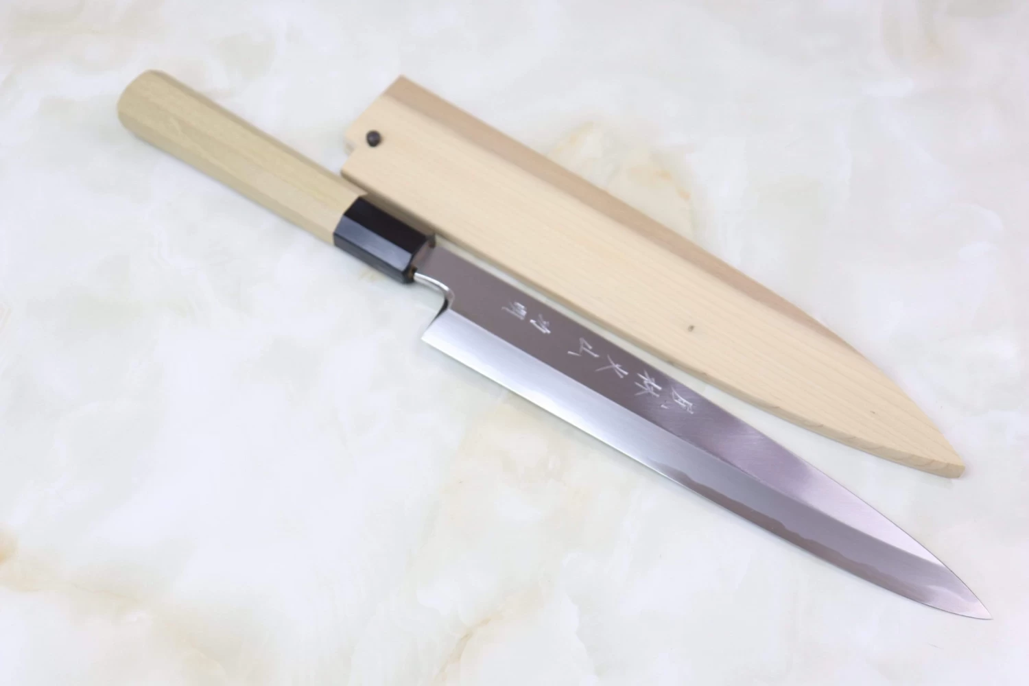 Working in busy kitchens, many Professional Sushi Chefs have to perform a wide variety of cutting tasks, such as breaking down, filleting and slicing fish for Sashimi and Sushi. The “Yanagi-Deba” was originally designed to meet their needs. With this single knife, a Sushi Chef can carry out most of their daily cutting tasks and maximize their time-efficiency.