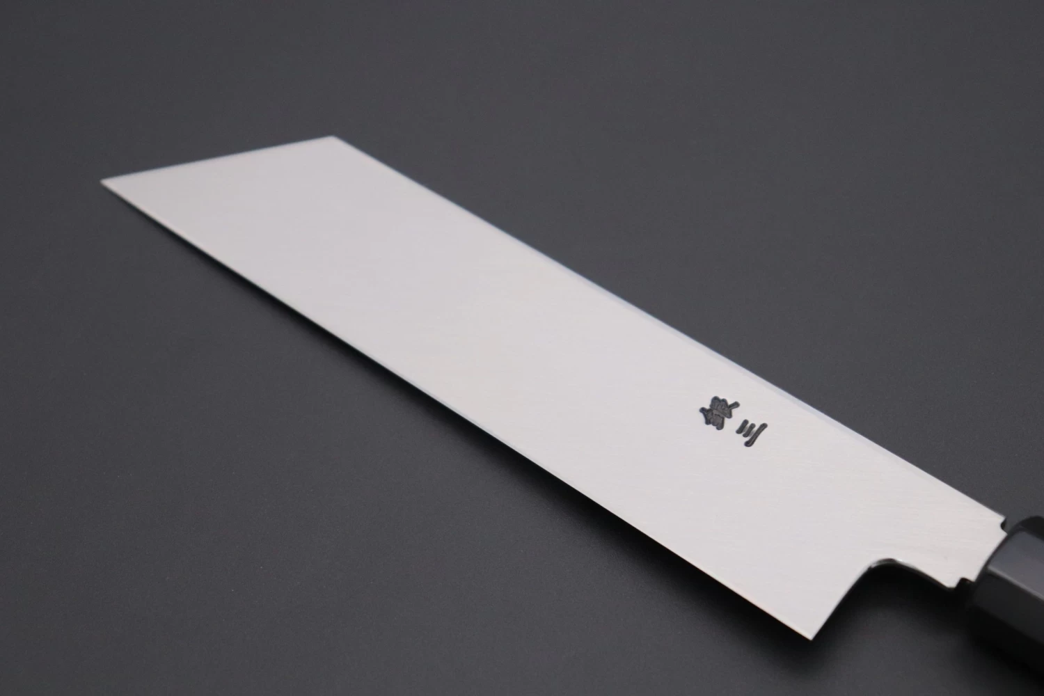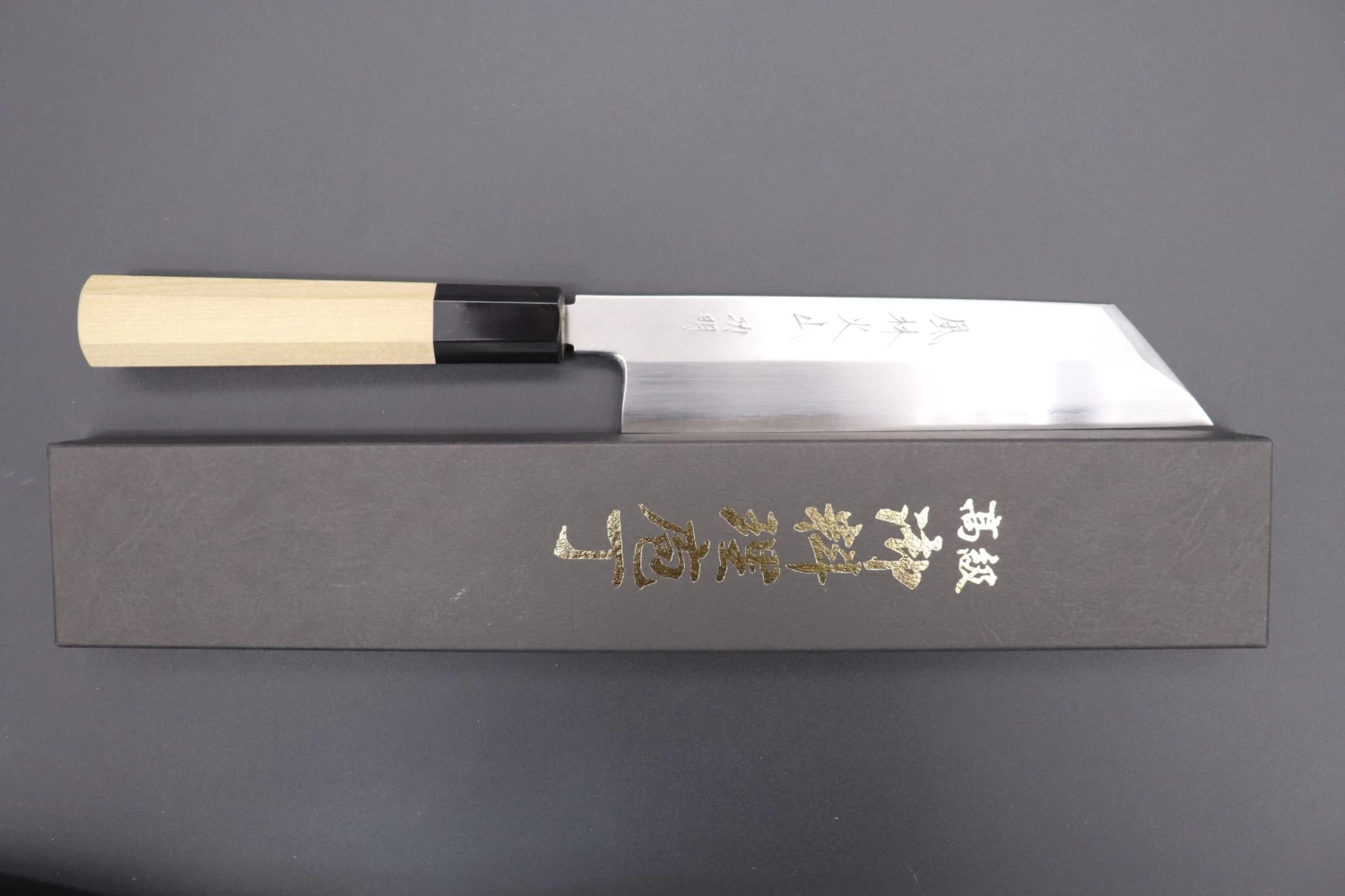 The Mukimono Hōchō is small knife with a thin blade that is commonly used for the Japanese art of Mukimono (Creating decorative garnishes), and also Kazari-giri (“Decorative vegetable carving”). However, it is often used as a small general-purpose knife for peeling and cutting fruits and vegetables since it can perform these tasks well.