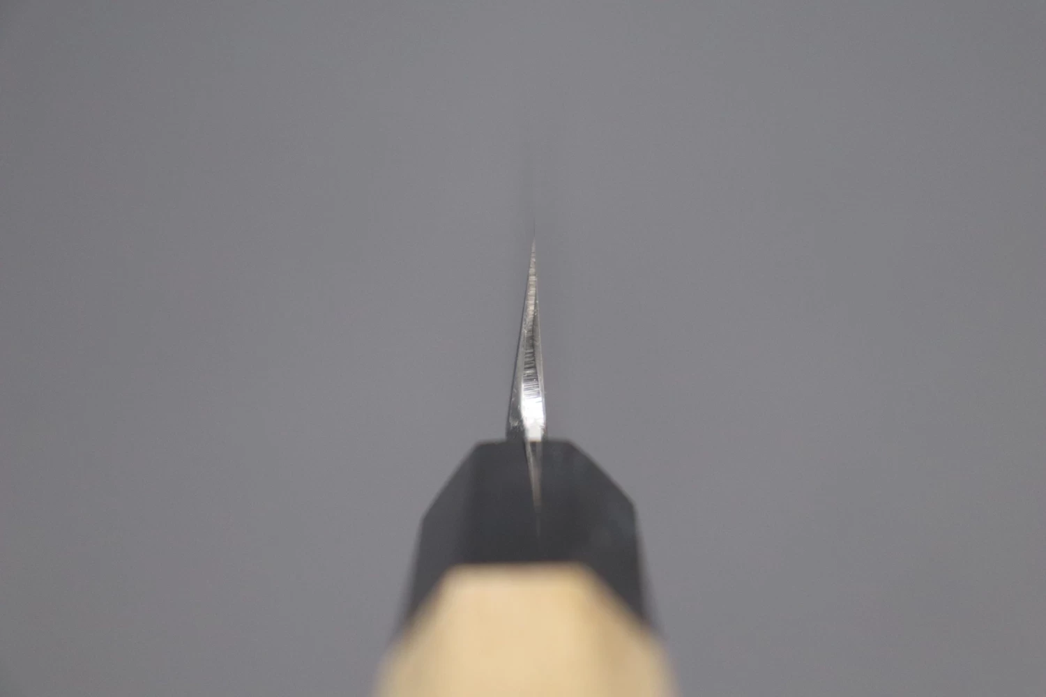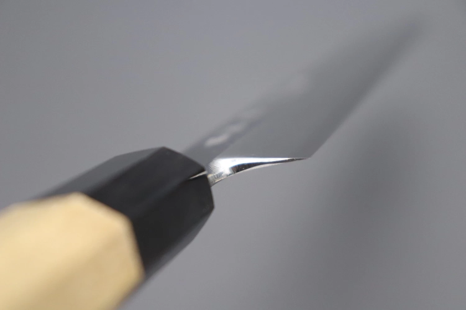 - No compromises are made during the finishing and fitting of the blade and handle. Particular attention is paid to the spine, the finger choil / heel, and the gap between the blade tang and the handle (The “Machi”). This extra work is not just important for the overall appearance of the knife; it also allows a more comfortable grip and provides a more secure handle. As a result, these knives are perfect for customers who care about both the aesthetic appearance and the functionality of their knives.