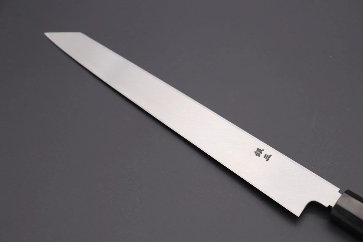 The Kirisuke Yanagiba has a very similar blade profile to the ‘regular’ Yanagiba, but it has what is commonly known as a ‘reverse tanto’ tip, or ‘clipped point’, which is very useful for precision cutting. Apart from this difference, the Kirisuke Yanagiba functions in the same way as the ‘plain’ Yanagiba or the Takohiki.