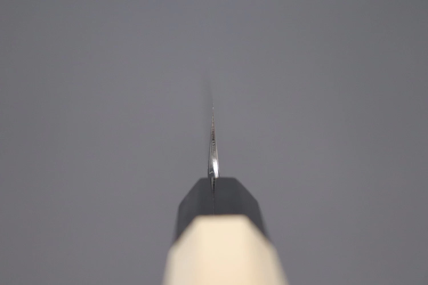 - No compromises are made during the finishing and fitting of the blade and handle. Particular attention is paid to the spine, the finger choil / heel, and the gap between the blade tang and the handle (The “Machi”). This extra work is not just important for the overall appearance of the knife; it also allows a more comfortable grip and provides a more secure handle. As a result, these knives are perfect for customers who care about both the aesthetic appearance and the functionality of their knives.