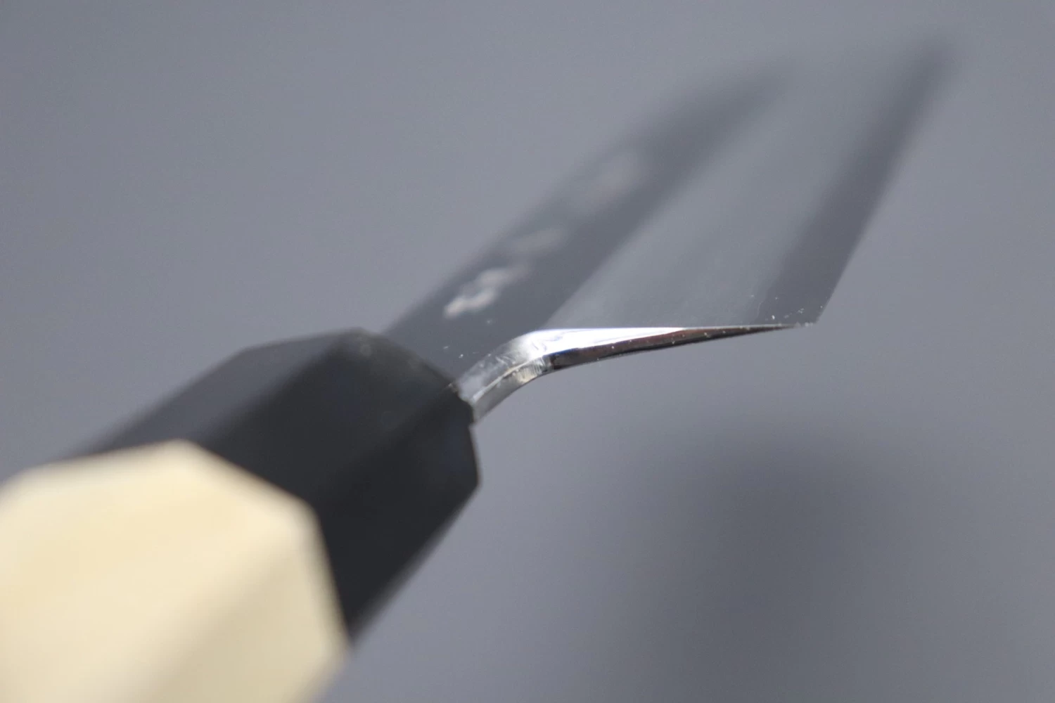 - No compromises are made during the finishing and fitting of the blade and handle. Particular attention is paid to the spine, the finger choil / heel, and the gap between the blade tang and the handle (The “Machi”). This extra work is not just important for the overall appearance of the knife; it also allows a more comfortable grip and provides a more secure handle. As a result, these knives are perfect for customers who care about both the aesthetic appearance and the functionality of their knives.