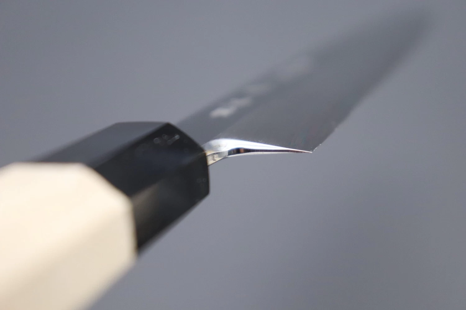 - No compromises are made during the finishing and fitting of the blade and handle. Particular attention is paid to the spine, the finger choil / heel, and the gap between the blade tang and the handle (The “Machi”). This extra work is not just important for the overall appearance of the knife; it also allows a more comfortable grip and provides a more secure handle. As a result, these knives are perfect for customers who care about both the aesthetic appearance and the functionality of their knives.