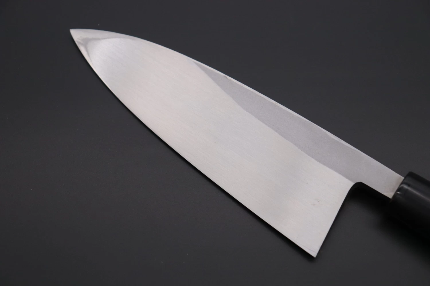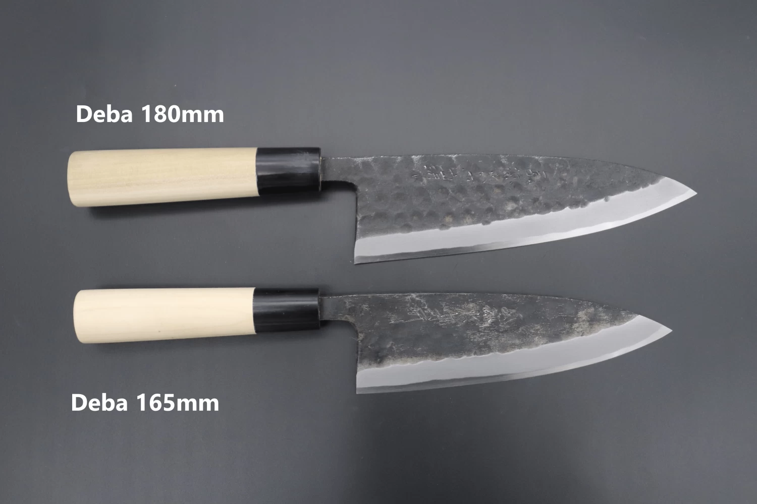 The Japanese Deba, which is also called the Hon-deba (Literally, “true deba”), is traditionally used to clean and fillet whole fish, but it is also commonly used for breaking down and dressing poultry and other meat with small bones. The significant weight of the Deba is desirable because, with adequate care, the sturdy heel section of the knife can be used to cut or chop through the bones found in small and medium-sized fish and poultry.