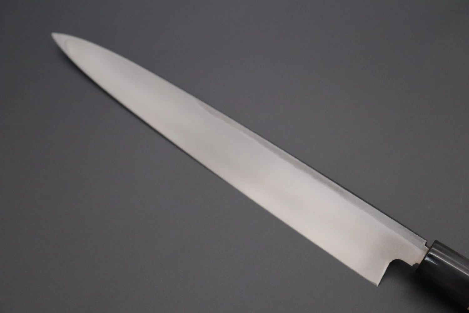 Yanagiba knives are primarily used to slice boneless fish fillets for Sashimi and Sushi dishes, but they can also be used to fillet small to medium-sized fish and are often used for skinning fish. The narrow blade and relatively acute edge angle of the Yanagiba are features which greatly reduce the effort required to cut through ingredients. As with the Sujihiki, the long blade allows the fish to be cut in one single drawing motion, from heel to tip.