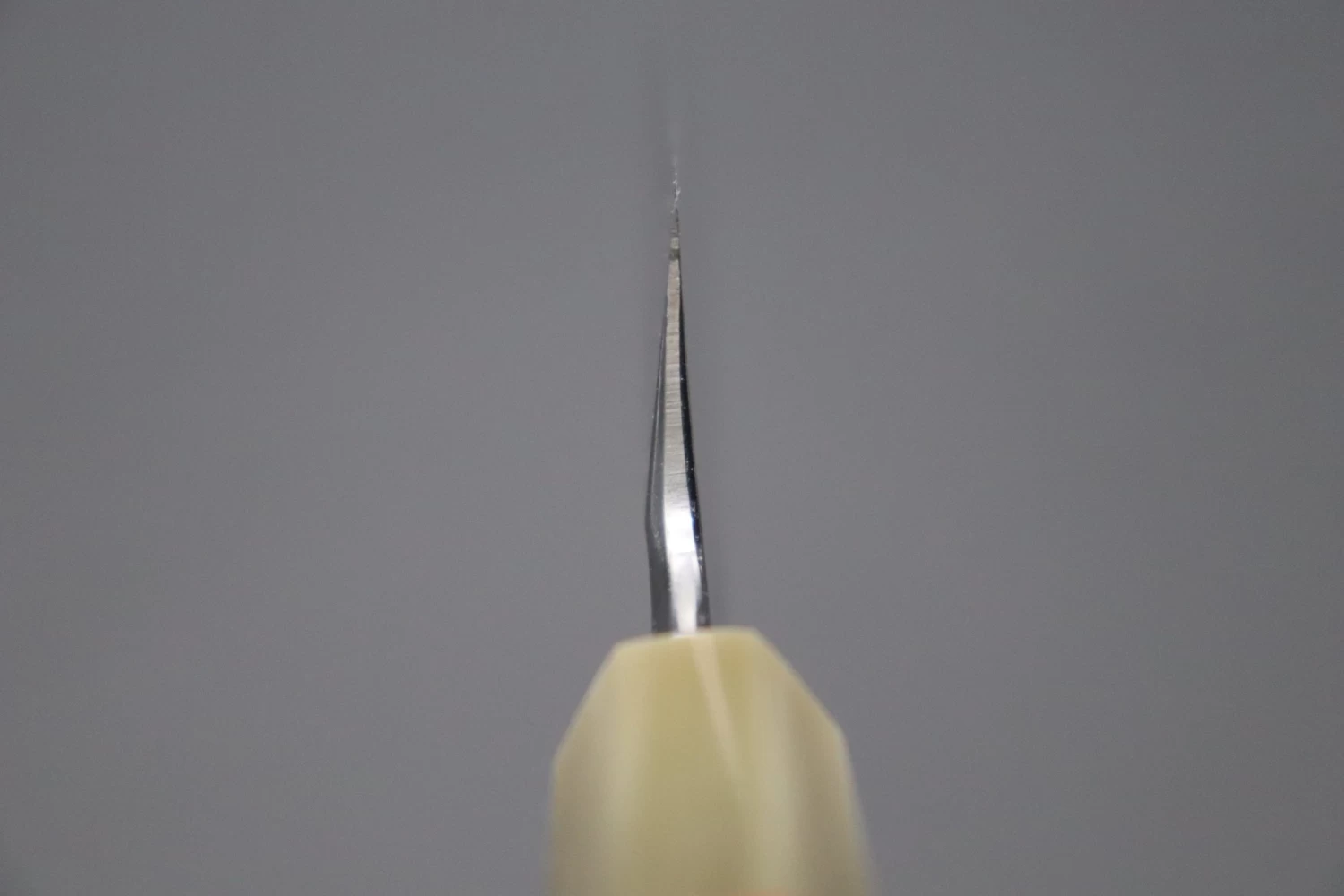 A cutting edge of high carbon Hitachi Blue Steel No.1 that is welded forged with soft iron for increased toughness and ease of re-sharpening. Blue Steel No.1 makes extra high cutting performance, edge retention and hardness.