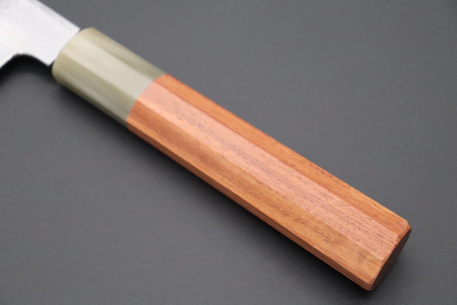 - After using, please hand wash the blade, bolster and handle thoroughly, and wipe it clean and dry with soft clothes. Please apply Tsubaki oil on the blade and keep it in dry place.