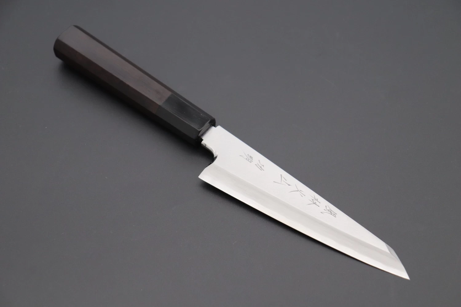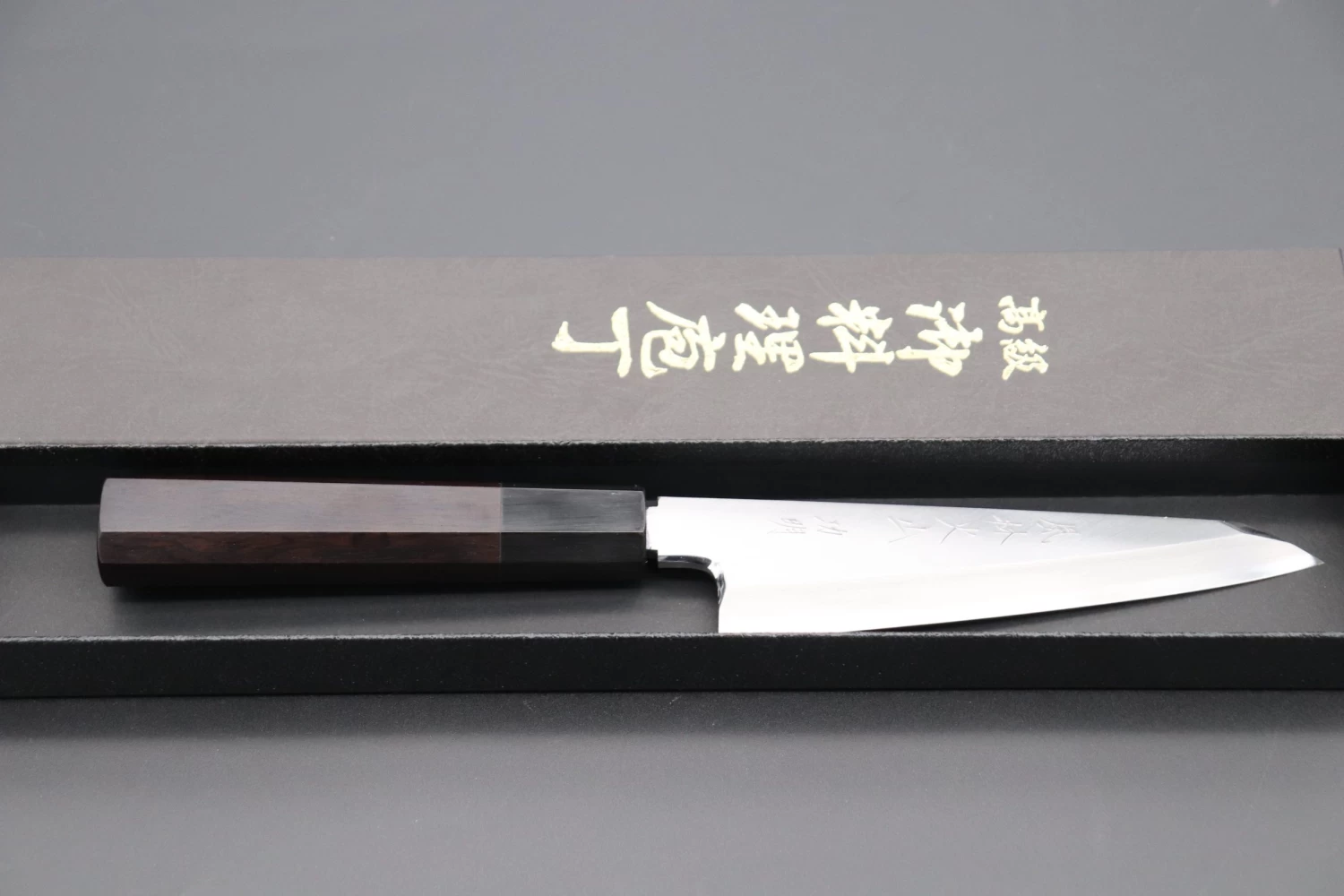 This is the special order made Fu-Rin-Ka-Zan Limited Model and available with limited quantity. Due to many requests from our customers, now the Single Bevel Edge of Japanese Traditional Style Boning Knife is being available. Both sides of blade is Perfectly Mirror Polished and it comes with Octagon Shaped Ebony Wooden Handle.