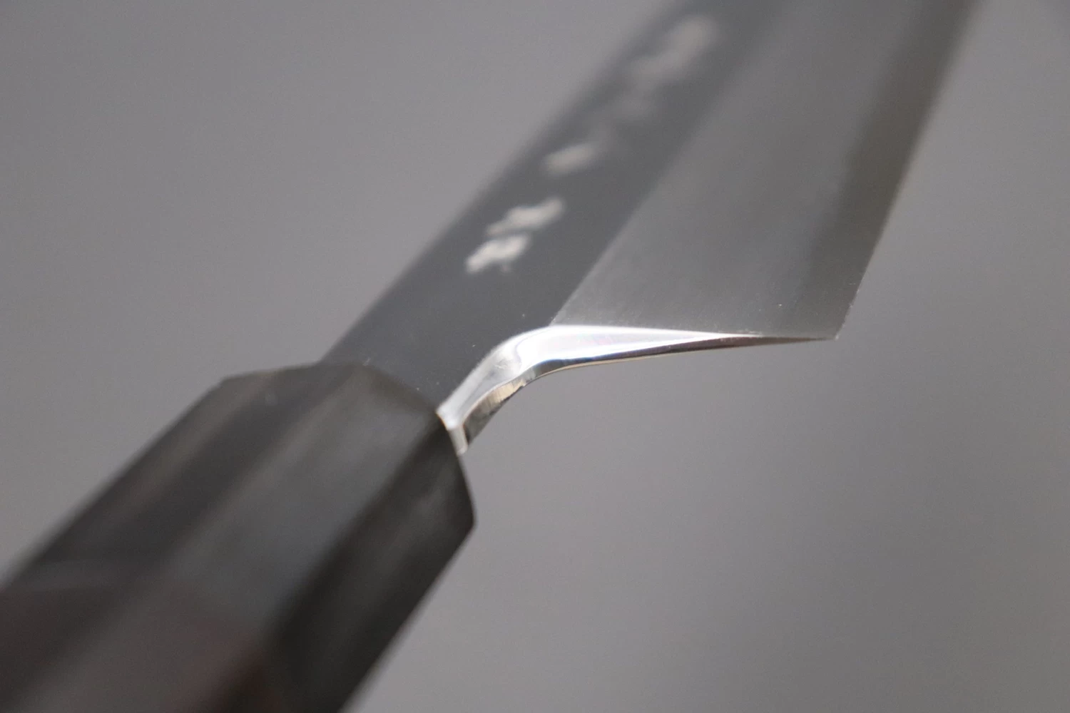 The single bevel edged Kiritsuke is a versatile knife that can be used to perform some of the tasks usually done by the Yanagiba and Usuba. The heel section of the knife is virtually flat and can be used just like an Usuba.