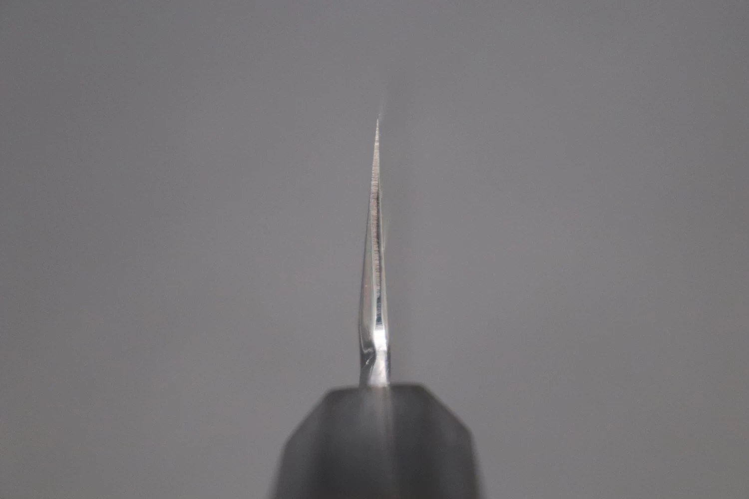 Japanese Traditional Style “Wa-Bocho” knives generally come with Single bevel edge for right handed use (the opposite side of blade is ground flat with slightly concaved shape). The reverse grinding left handed version is also available at 50% extra of regular price. (Sorry for much extra! Due to a small demand for the left handed version in Japan, it is costly to run a special small production from the beginning step). We try to keep the left handed versions in stock, but once sold out, it may take 60 to 90 days for delivery. Please contact us first for the availability at email.