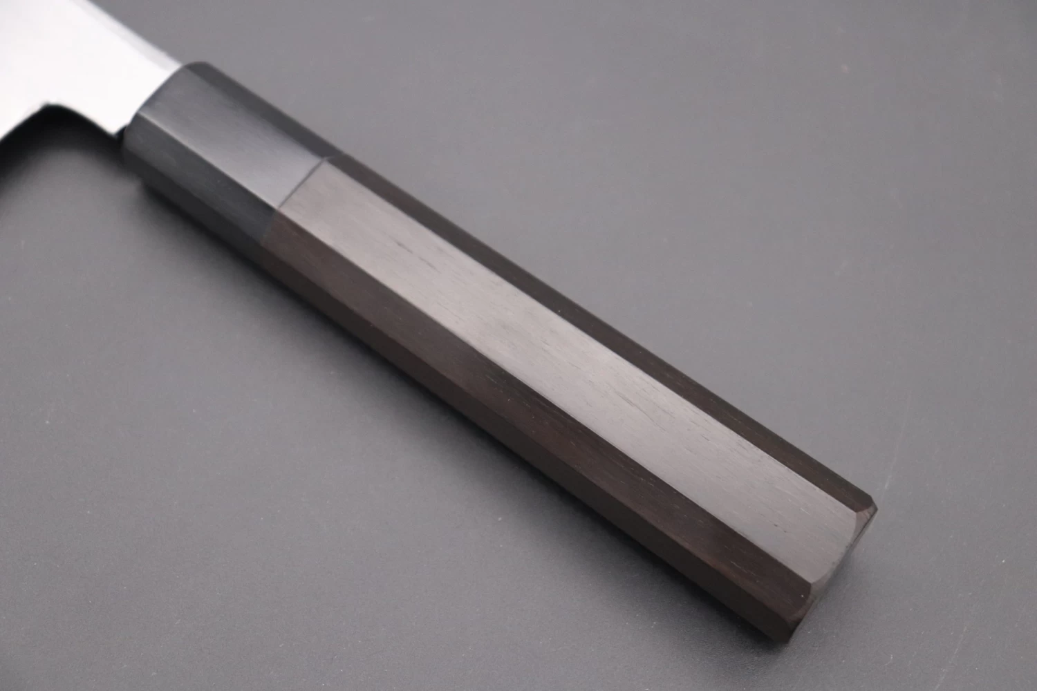 This is the special order made Fu-Rin-Ka-Zan Limited Model and available with limited quantity. Beautiful Masterpiece of White Steel No.1 Kiritsuke knife with Octagon Shaped Ebony Wooden Handle and hand crafted Magnolia wooden saya.