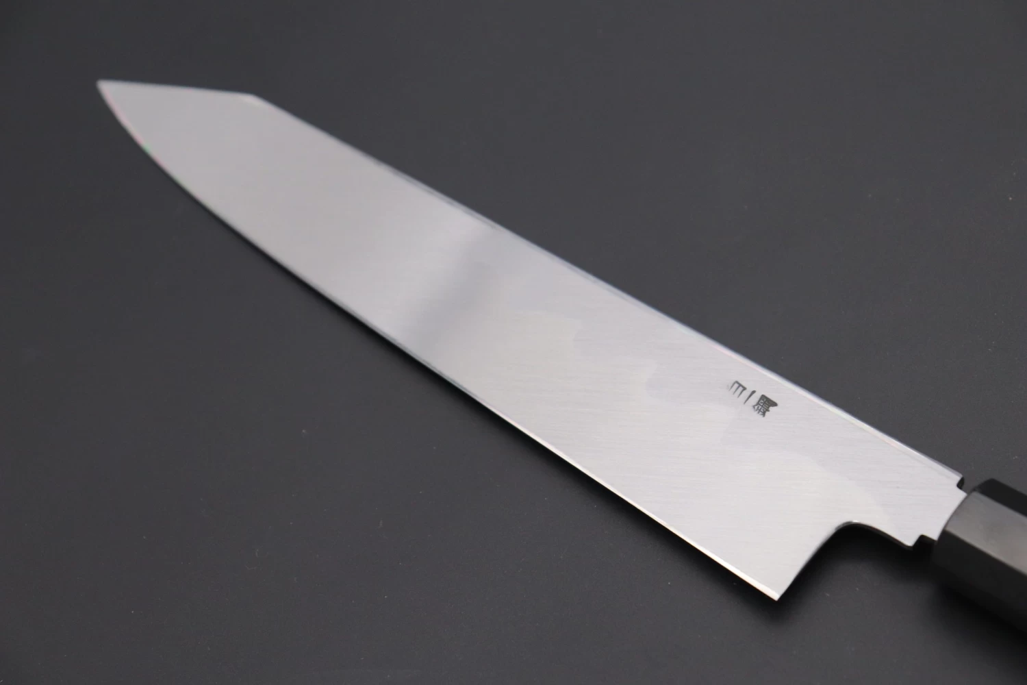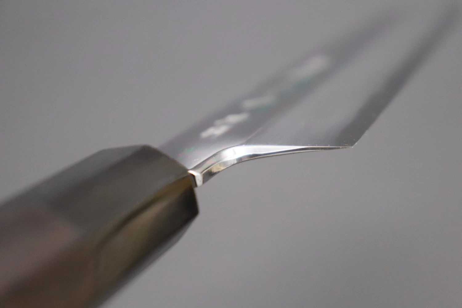 The single bevel edged Kiritsuke is a versatile knife that can be used to perform some of the tasks usually done by the Yanagiba and Usuba. The heel section of the knife is virtually flat and can be used just like an Usuba.