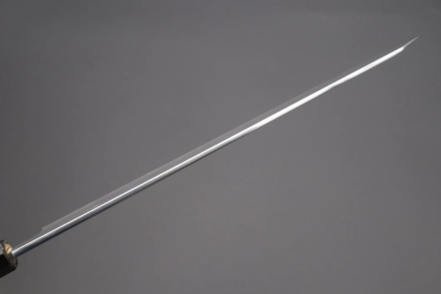 Kiritsuke Yanagiba 270mm (10.6″) Cutting edge length: 261mm Blade Thickness: 4mm Blade Width: 34mm Total Weight: 176g |