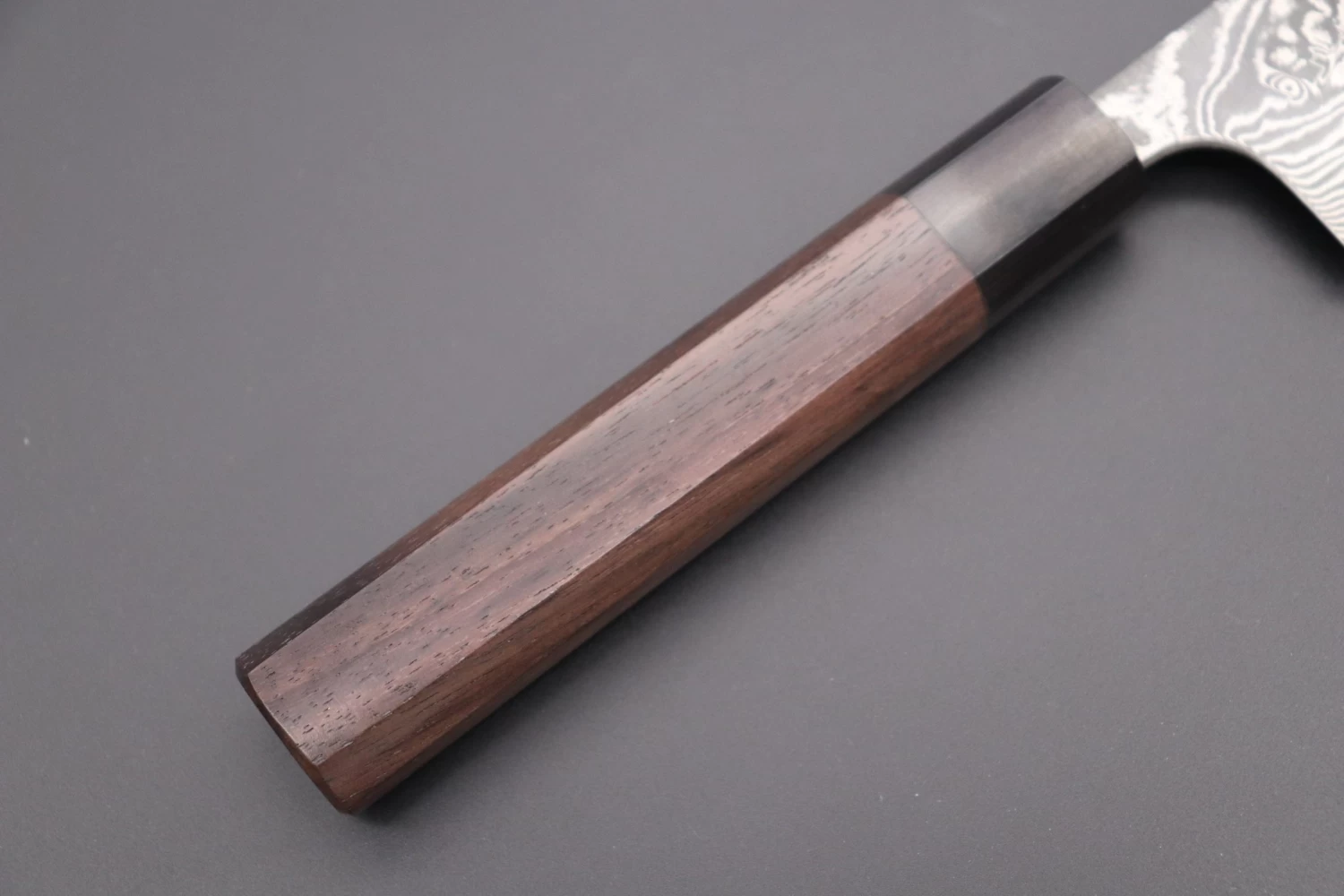 We requested that Master Yamamoto produce these knives using his fine hammer forging process and R-2 Powdered metallurgy steel. His traditional hammer forging technique makes the micro-structure of the steel finer, allowing the production of a very stable cutting edge that provides superior edge retention and cutting performance. In fact, the edge retention of Master Yamamoto’s R-2 blades is comparable to other famous powdered steels, such as ZDP-189 and Cowry-X.