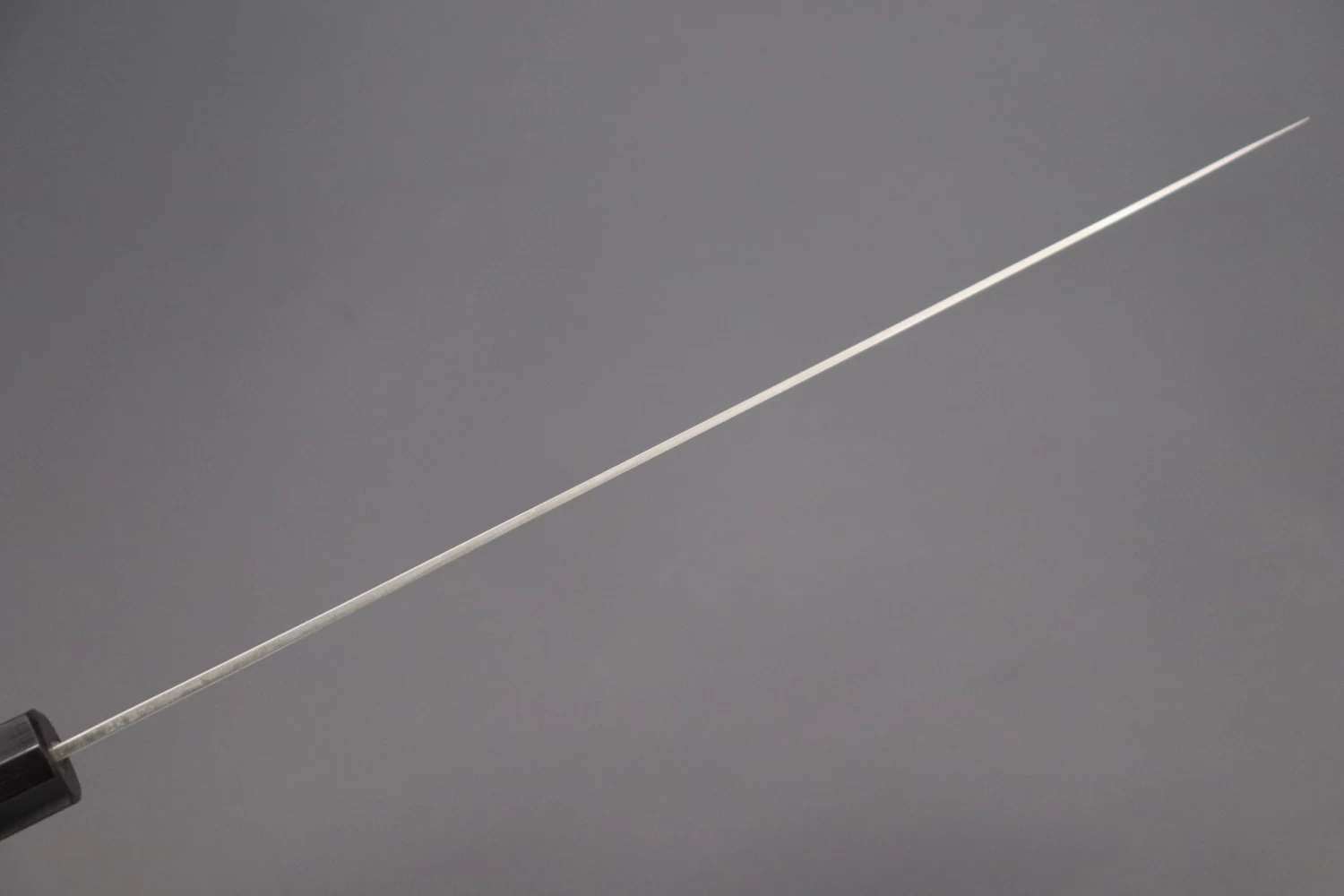 The long, narrow, graceful blade of the Sujihiki is particularly useful for trimming away sinew and fat from meat, finely slicing meat or boneless fish, or for filleting and skinning fish. The long blade allows the meat or fish to be cut in one single drawing motion, from heel to tip.