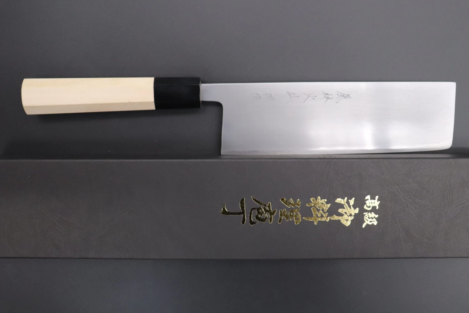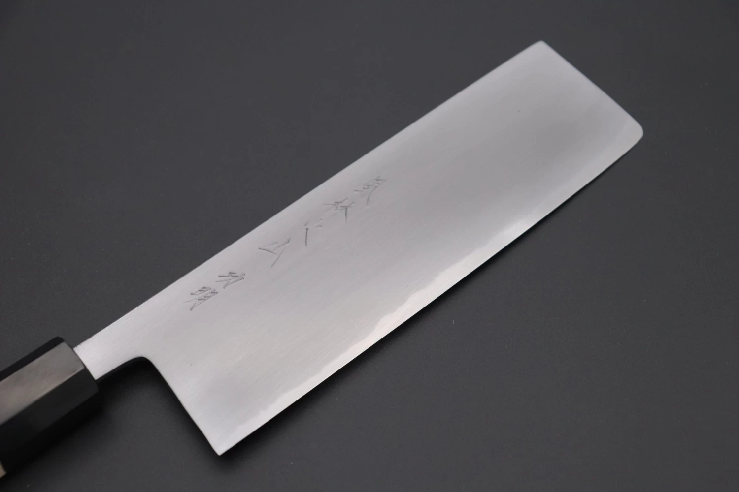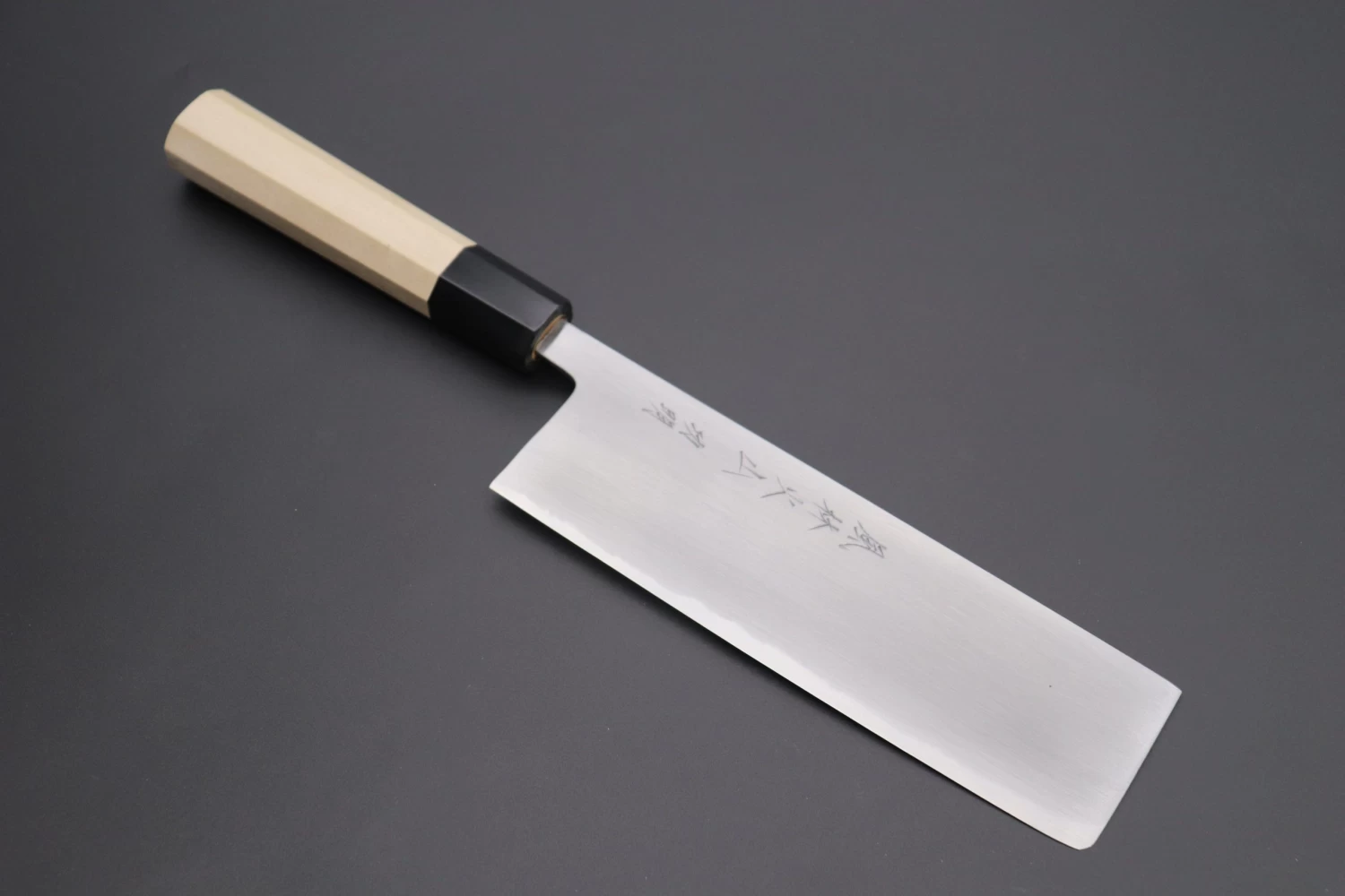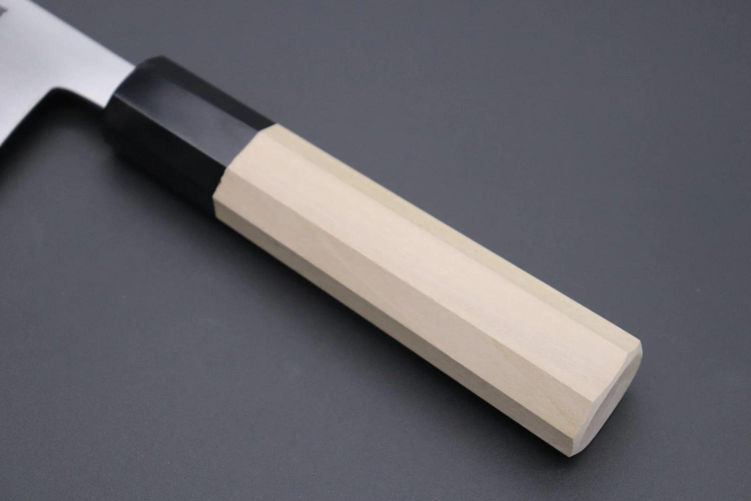 This Nakiri knife has a comfortable octagonal magnolia wood handle, which has a buffalo horn ferrule.