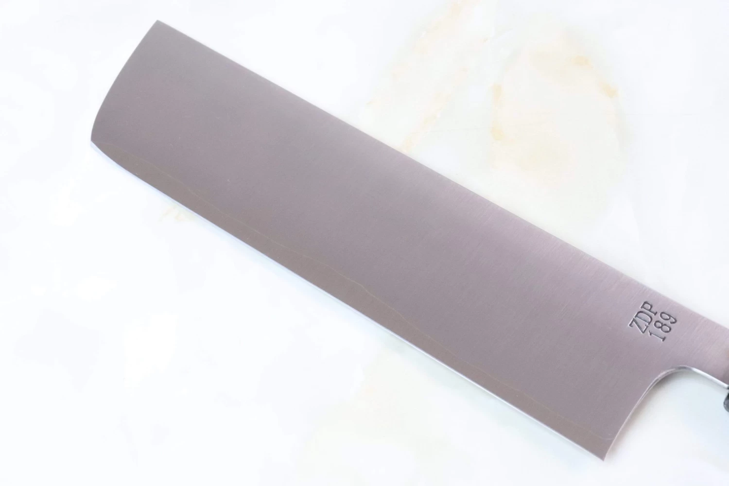 Hitachi ZDP-189 is a premium Powdered Metallurgy (P.M.) tool steel (Carbon 3%, Chromium 20%) that is very attractive to knife enthusiasts, but is seldom seen in the kitchen knife market.